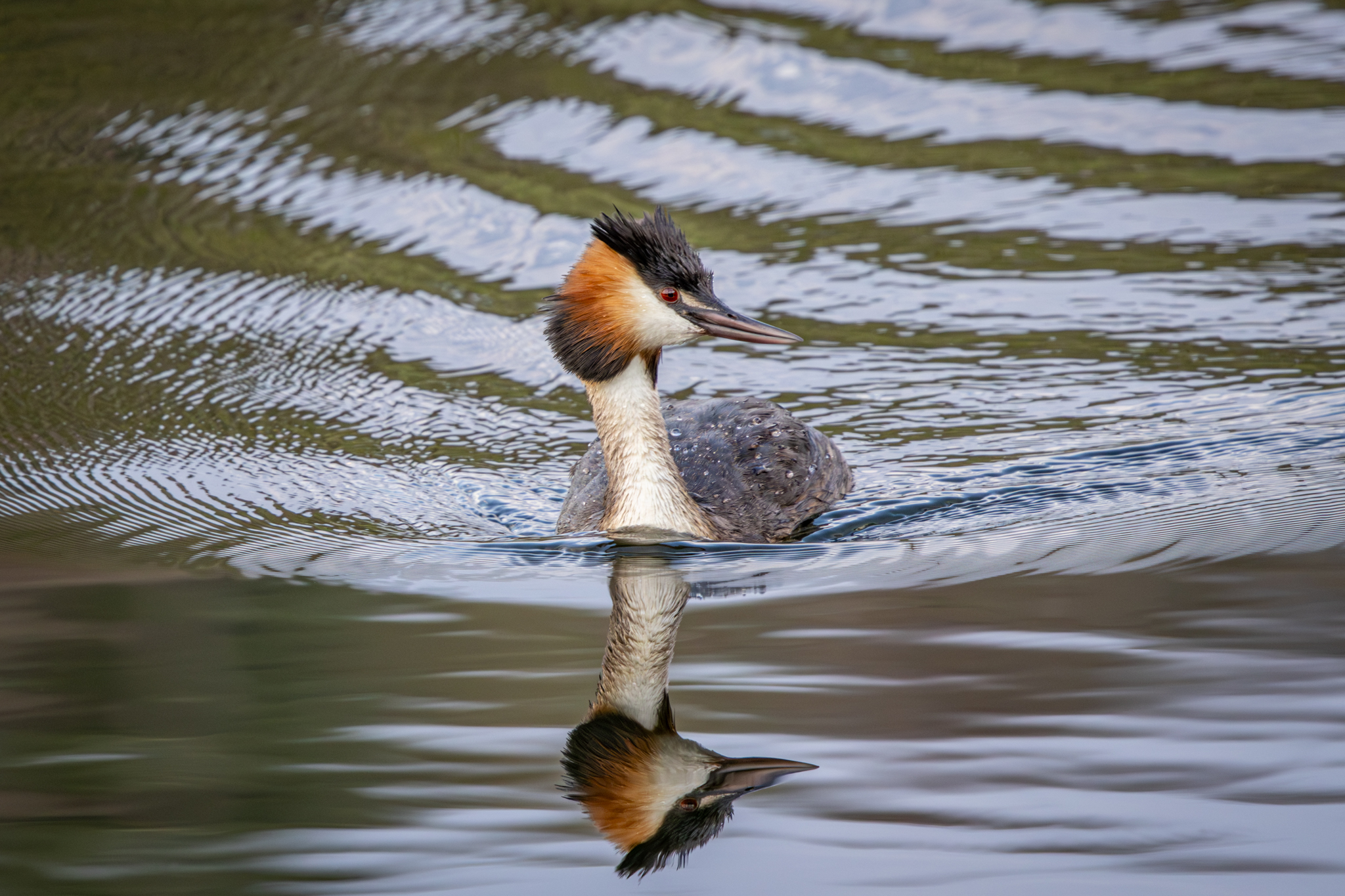 Our journey continued eastward across the southern half of South Africa, ending up on Day 7 at the Fairy Knowe Hotel. This picturesque cluster of thatched-roof buildings lay just east of the town of George which is just about where the Atlantic and Pacific Oceans meet. The hotel itself sat alongside the Touwsrivier River, a couple of miles from the coastline. A Great Crested Grebe floated on the river just outside of our room so I had to get a reflection shot. It was a nice bird, but not the most spectacular bird we saw there.