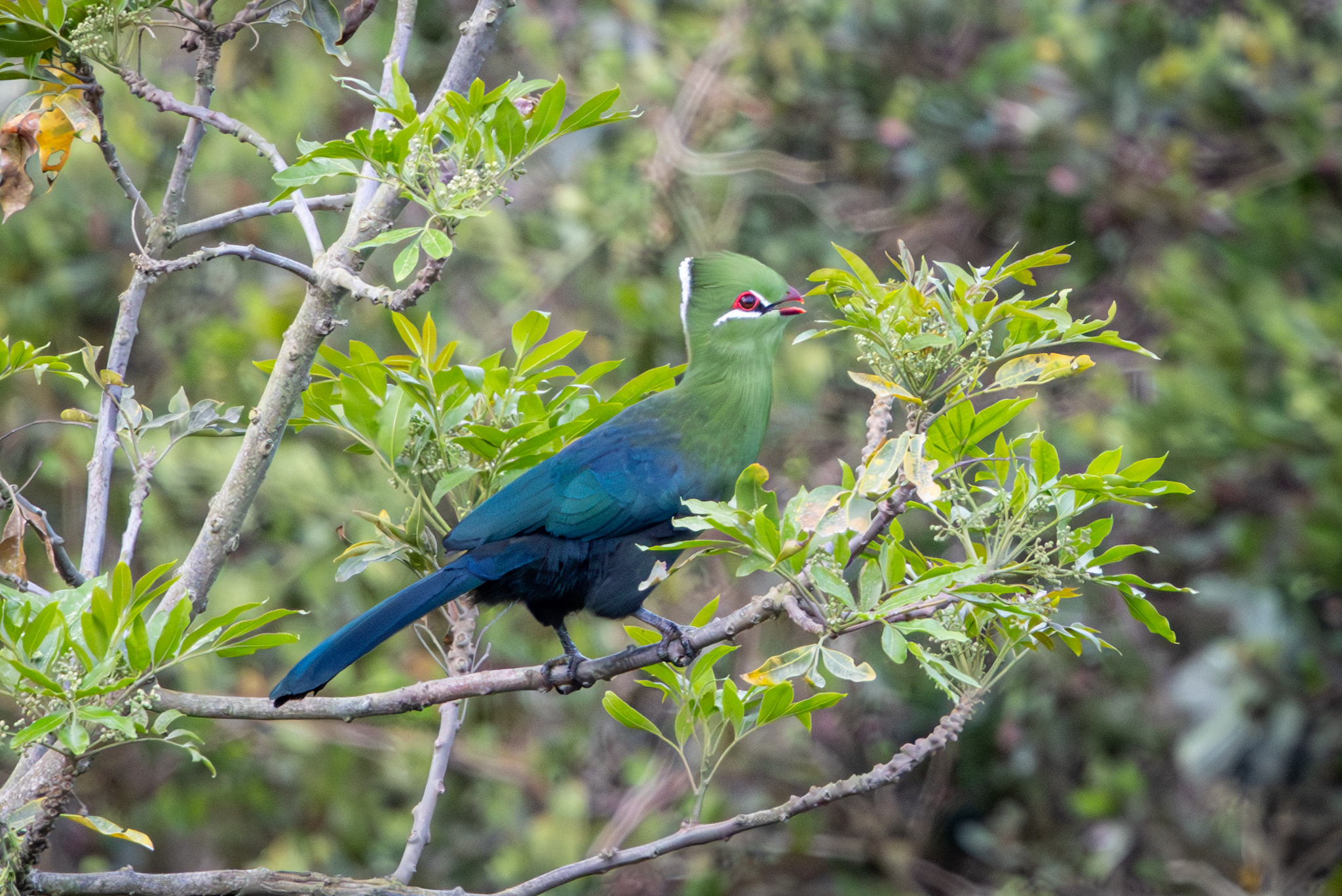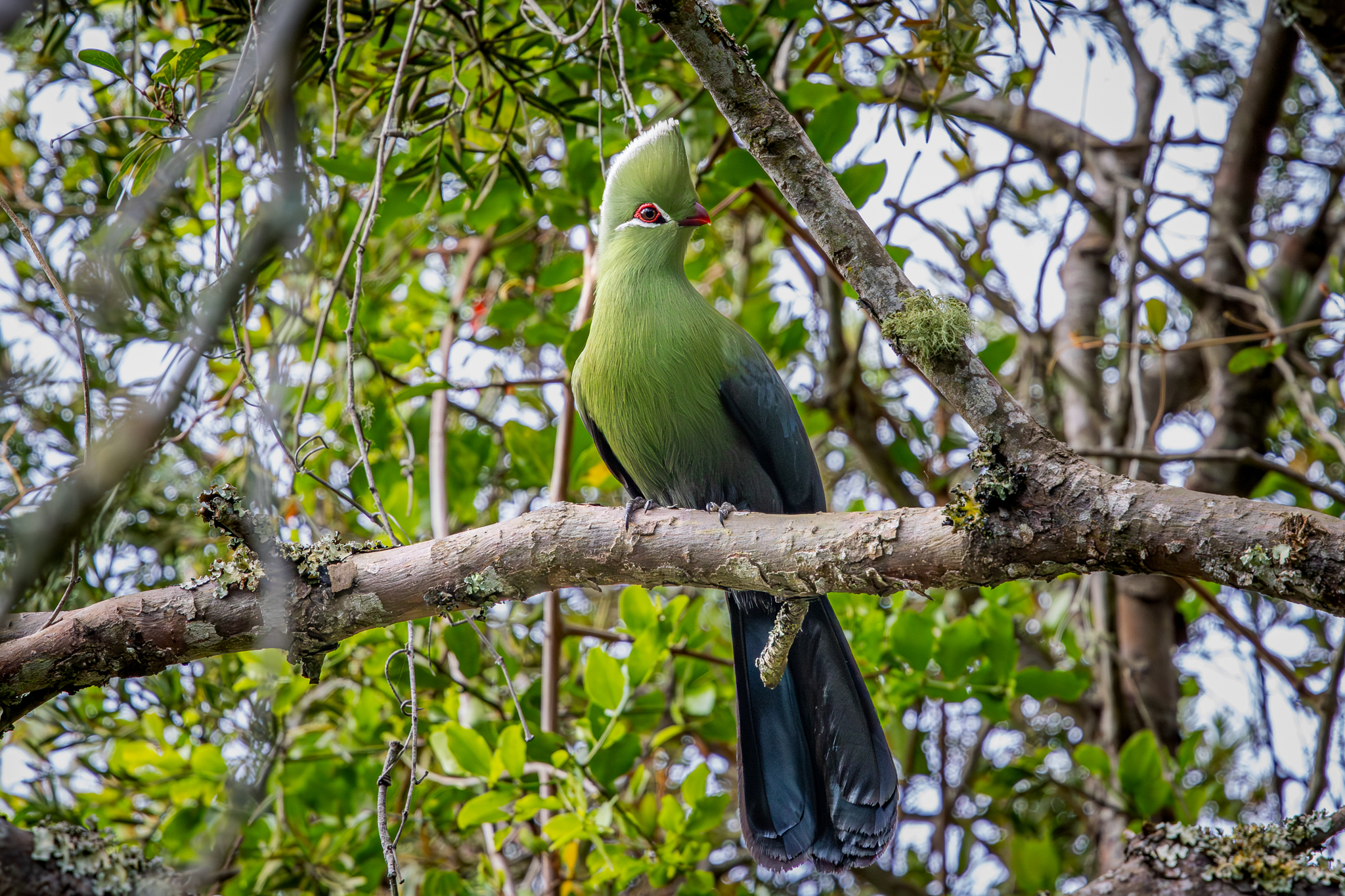 What an amazing bird! Bright red wing feathers and a triangular head – it couldn’t be any more distinctive. I needed a better look at it, but it disappeared into the forest. This was my first look at a Knysna Turaco and I wanted more.