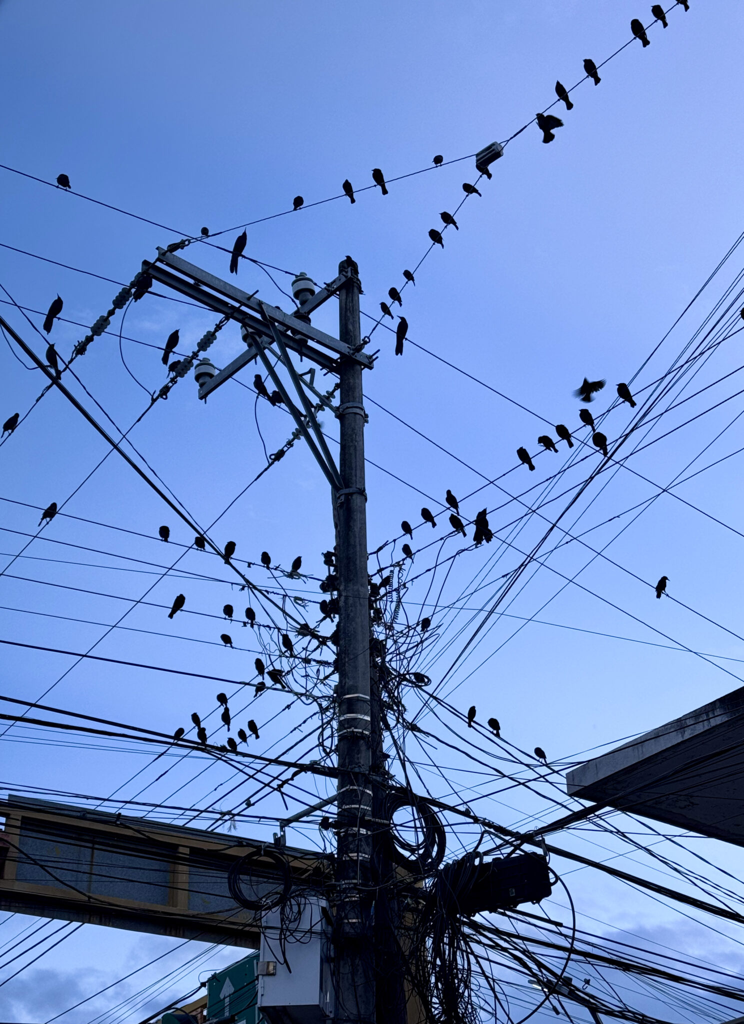 Here’s another shot Paul took while in Cardel, Mexico. He said Bronze Cowbirds were everywhere and here you can see more than 50 of them perched on the phone/electrical wires in town. I’ve seen transmission poles like this elsewhere in Central American and it’s a wonder anything works there.