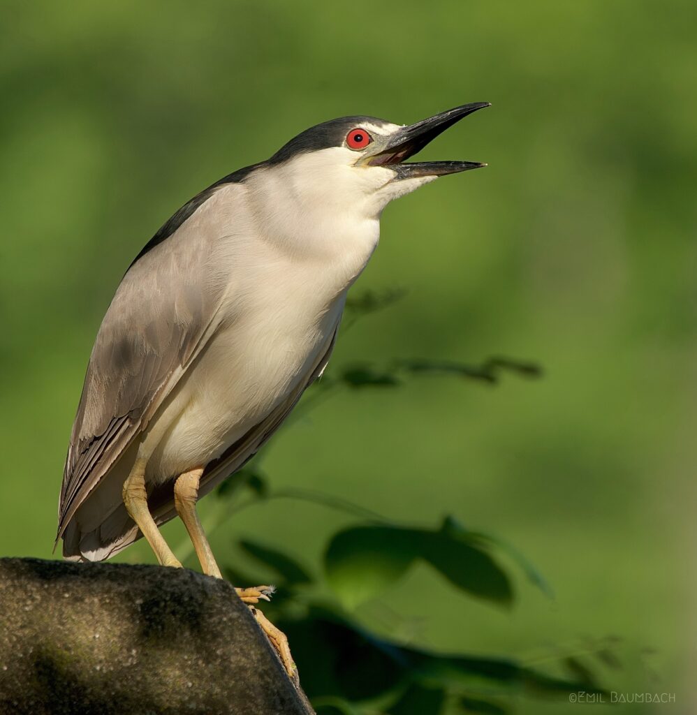 Emil Baumbach was watching a Black-crowned Night-heron when another one flew overhead. He snapped this image as his target bird gave a warning to the flyover bird to stay away.