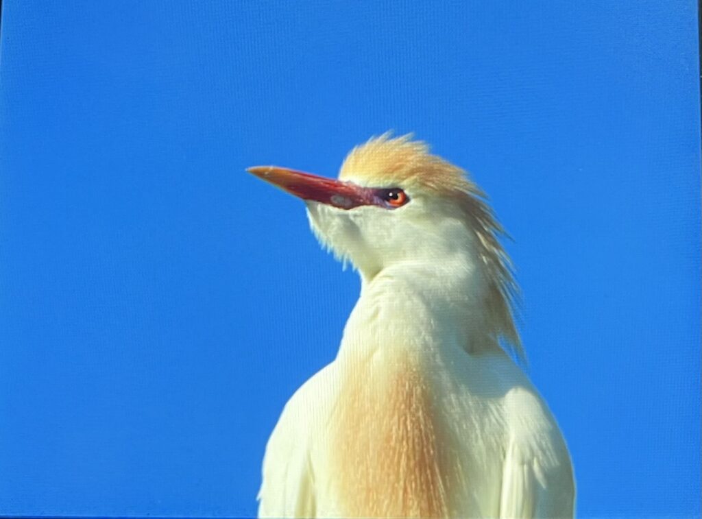 Continuing with a recent theme of closeups, here’s one of a Cattle Egret by Birdygirl. How did she get this angle? Was it sitting on the back of a cow?