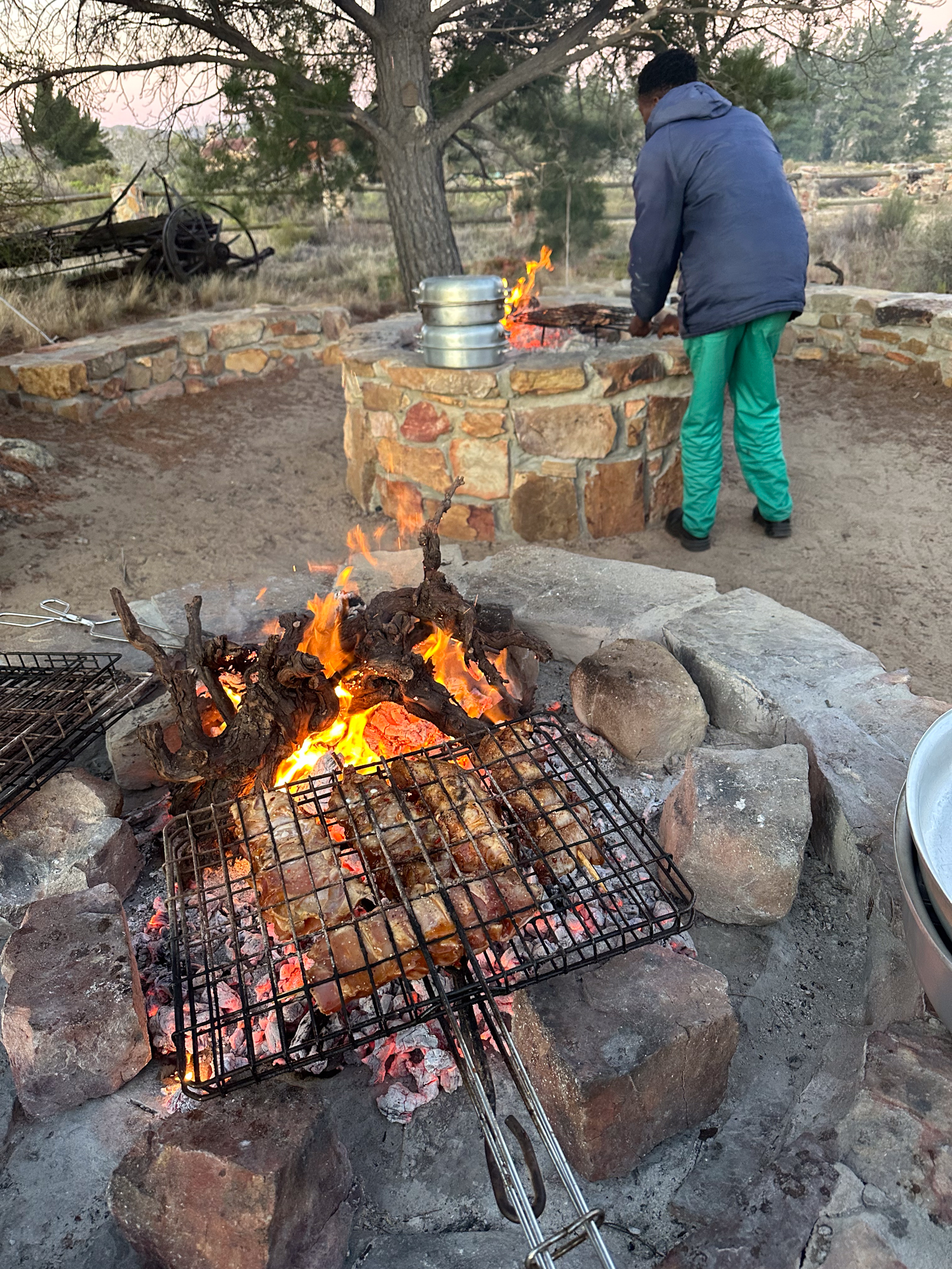 We arrived there shortly before dinner so we went behind the dining area to watch our meal being cooked over two fire pits.