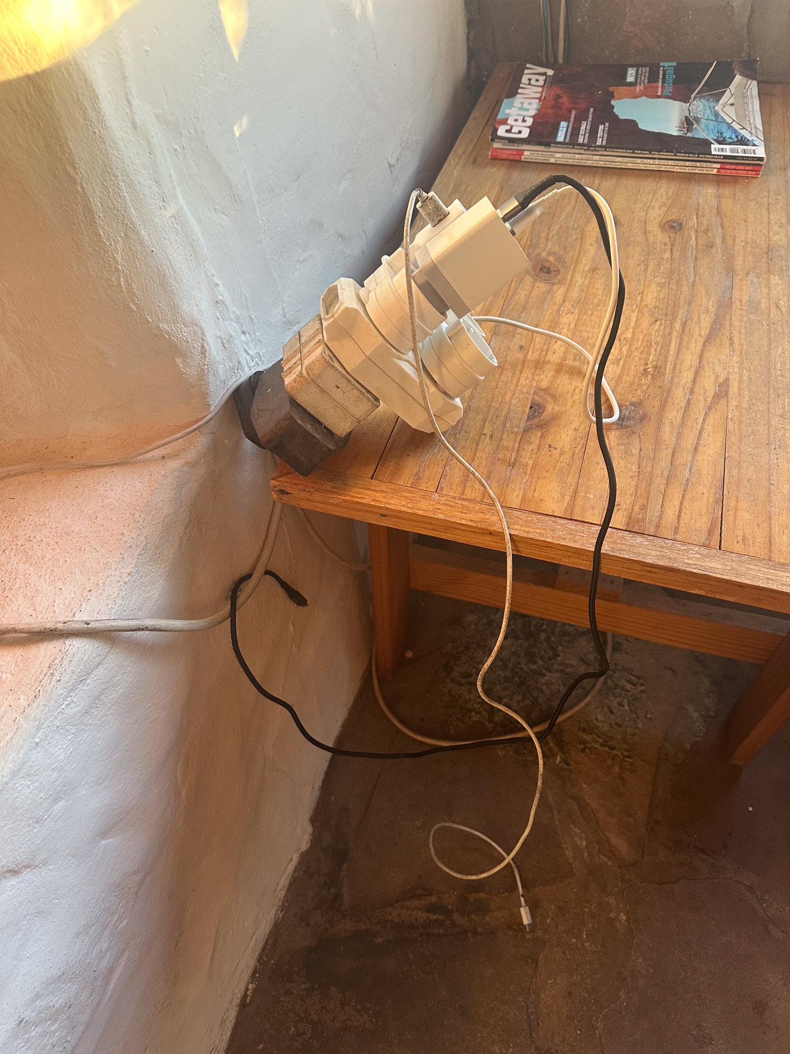 To be fair, they did have a solar panel/battery setup used primarily to power the refrigerators holding the perishable ingredients for our meals. Below is the only electrical source provided to the guests (I did need to use it to charge my hearing aides each night).