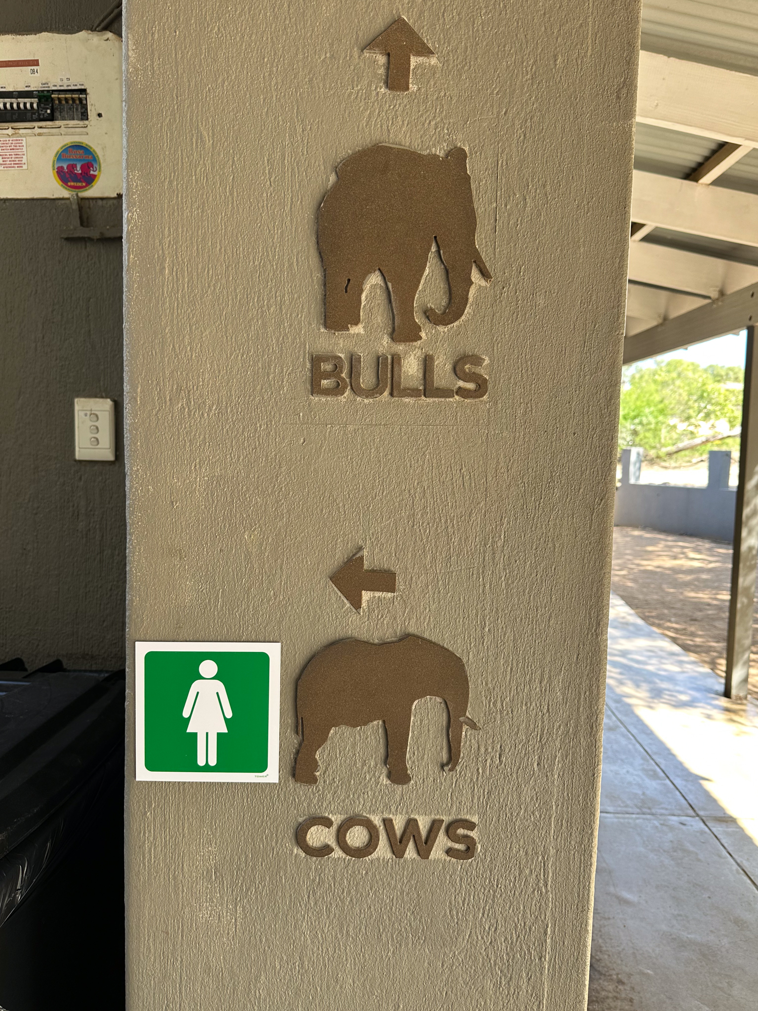 Of course after several hours of sitting in the safari vehicle we needed a “comfort stop.” Bulls to the right and Cows to the left.