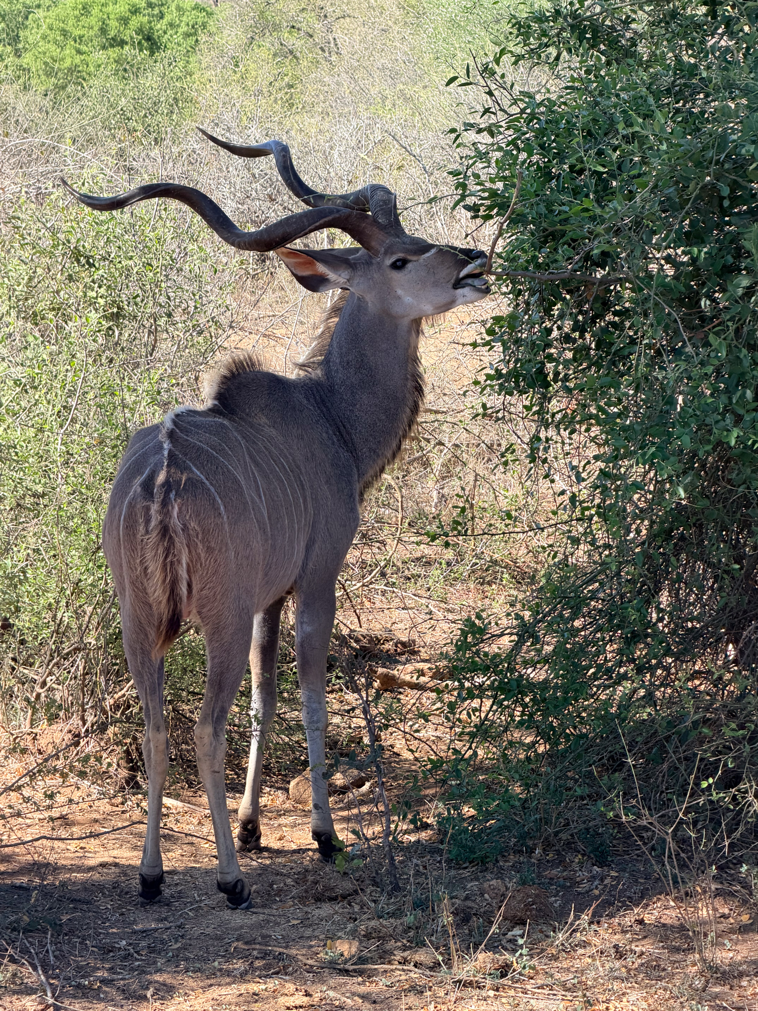 In the previous post I shared a picture of a female Greater Kudu. On this day we found a male Greater Kudu feeding off the side of the road.