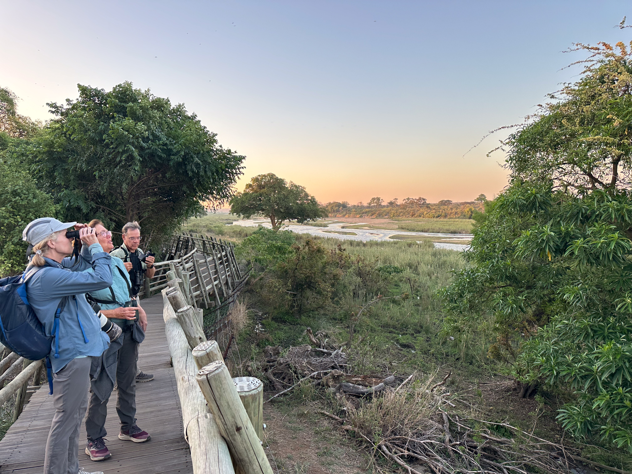 We arrived at Lower Sabie, our lodging for the next two nights, just before sunset. We walked along a short boardwalk up to the dining area as the sun fell.
