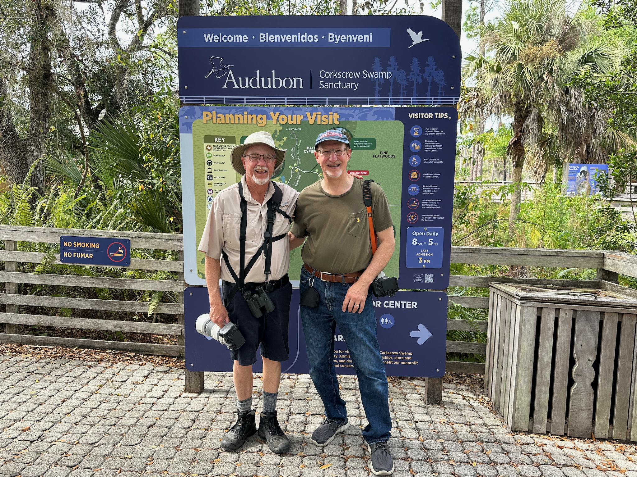 It just so happened that GreatBirdPics member, and frequent contributor, Paul Demkovich lives in the Naples area so I arranged to meetup with Paul and his wife Shiela there. We met Paul and Shiela on the Nova Scotia and Newfoundland birding trip a year ago and we’ve been in contact via GreatBirdPics ever since. Here I am on the left with Paul meeting at the entrance to the boardwalk.