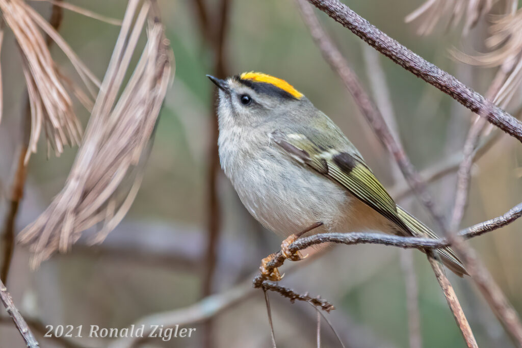 Lastly, a fan favorite – the Golden-crowned Kinglet. Such tough birds to photograph (because they bounce around constantly) give lots of credit to Ronal Zigler for this one!