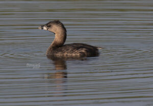 Finally, we leave you with a look at one of my wife Karen’s favorite waterfowl – the Pied-billed Grebe. Pied means two-colored so this small diving bird is aptly named. It seems like it is under water as much as it glides along on the surface. They migrate down from their breeding grounds way up north and are arriving as we speak. Great shot Birder2011!