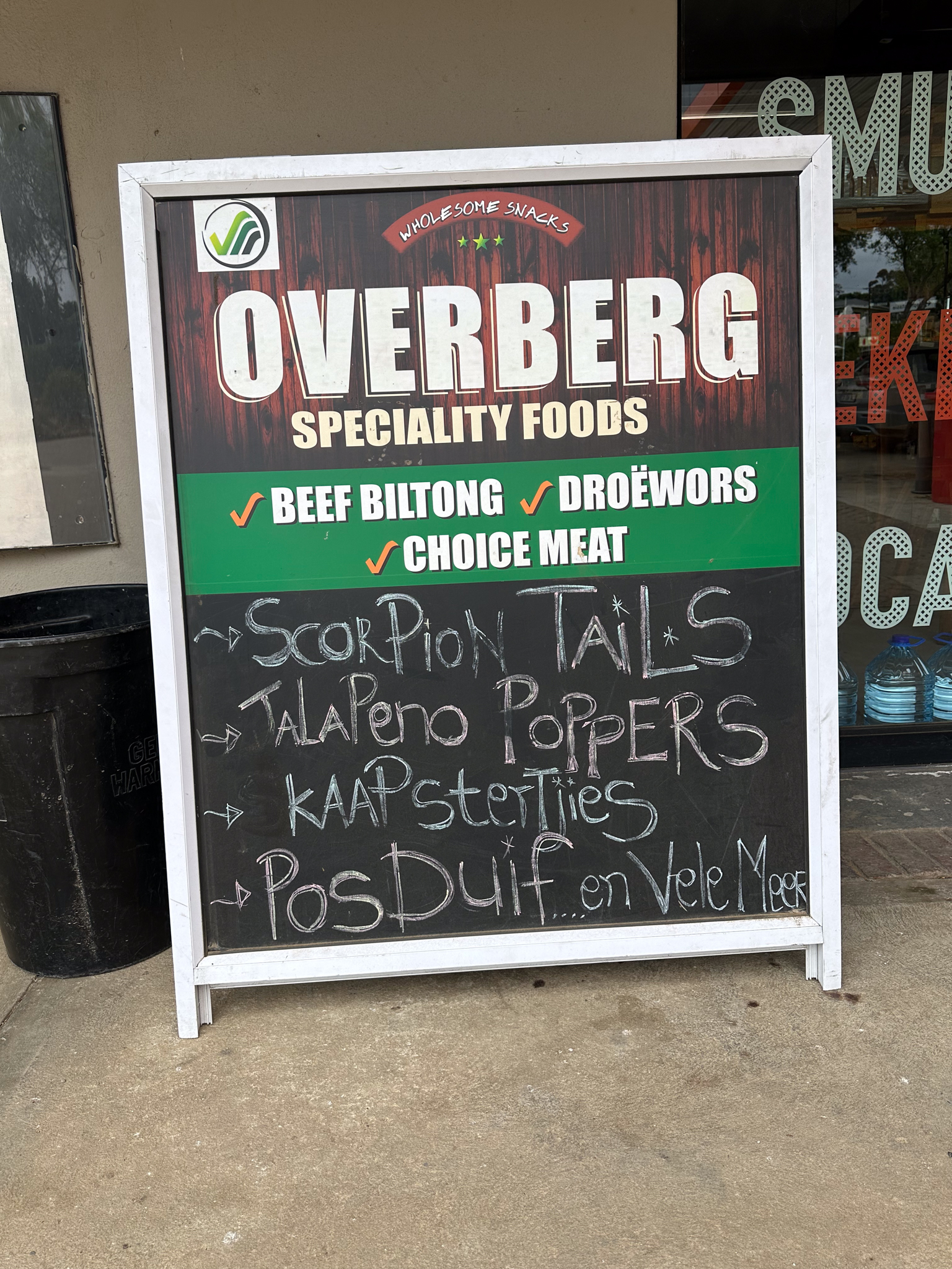 After finally finding the Cape Rock Jumper at Rooi-Ells we hit the road again. After starting in Cape Town, we were on a counter-clockwise route around the southern region of South Africa, stopping at a variety of hotspots along the way. Today we were enroute to the town of Swellendam, taking country roads most of the way. We were surrounded by farmland as far as the eye could see – it was like driving through Kansas (where there is nothing else to see but wheat fields). We made a number of stops along the way because it was good habitat for grassland birds. We packed a bag lunch for the road, but skipped the scorpion tails.