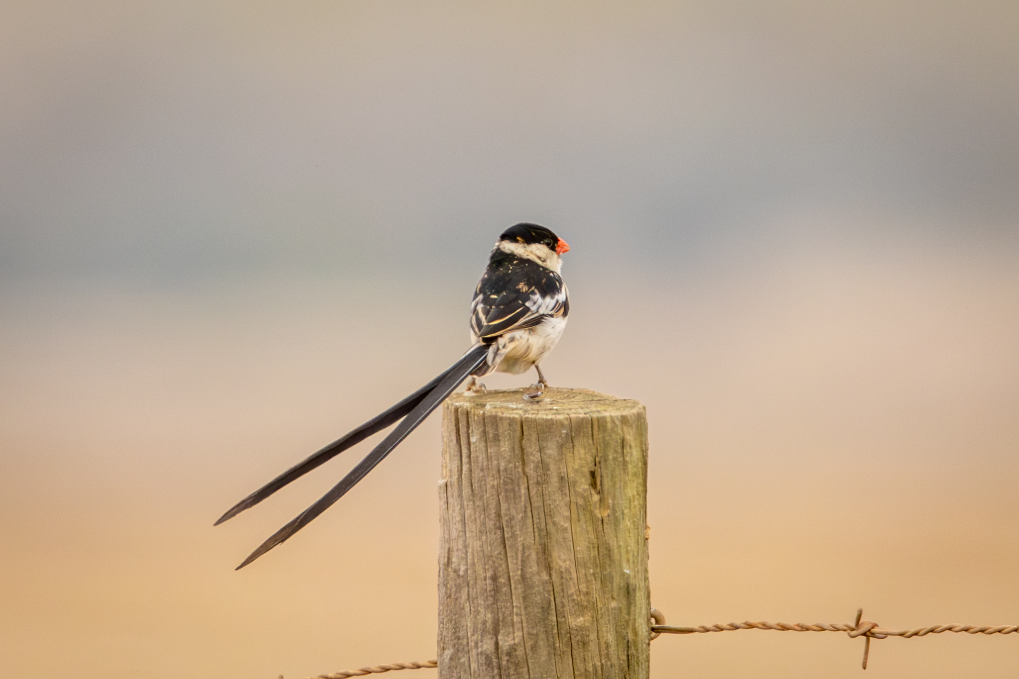 A Pintailed Whydah perched atop a fence post – I missed the BIF shot of its tail streaming behind it because the bird suddenly took off and unfortunately we never saw another one during our trip.
