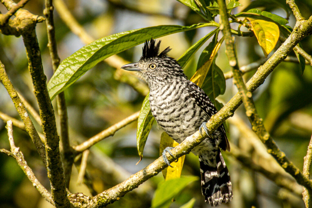 Because part of the forest had been cleared for farming the area provided two quite different habitats: open space and dense forest. In the vegetation bordering the open space we were able to see several wonderful birds. One of my favorites was the Barred Antshrike with its funky hairdo!