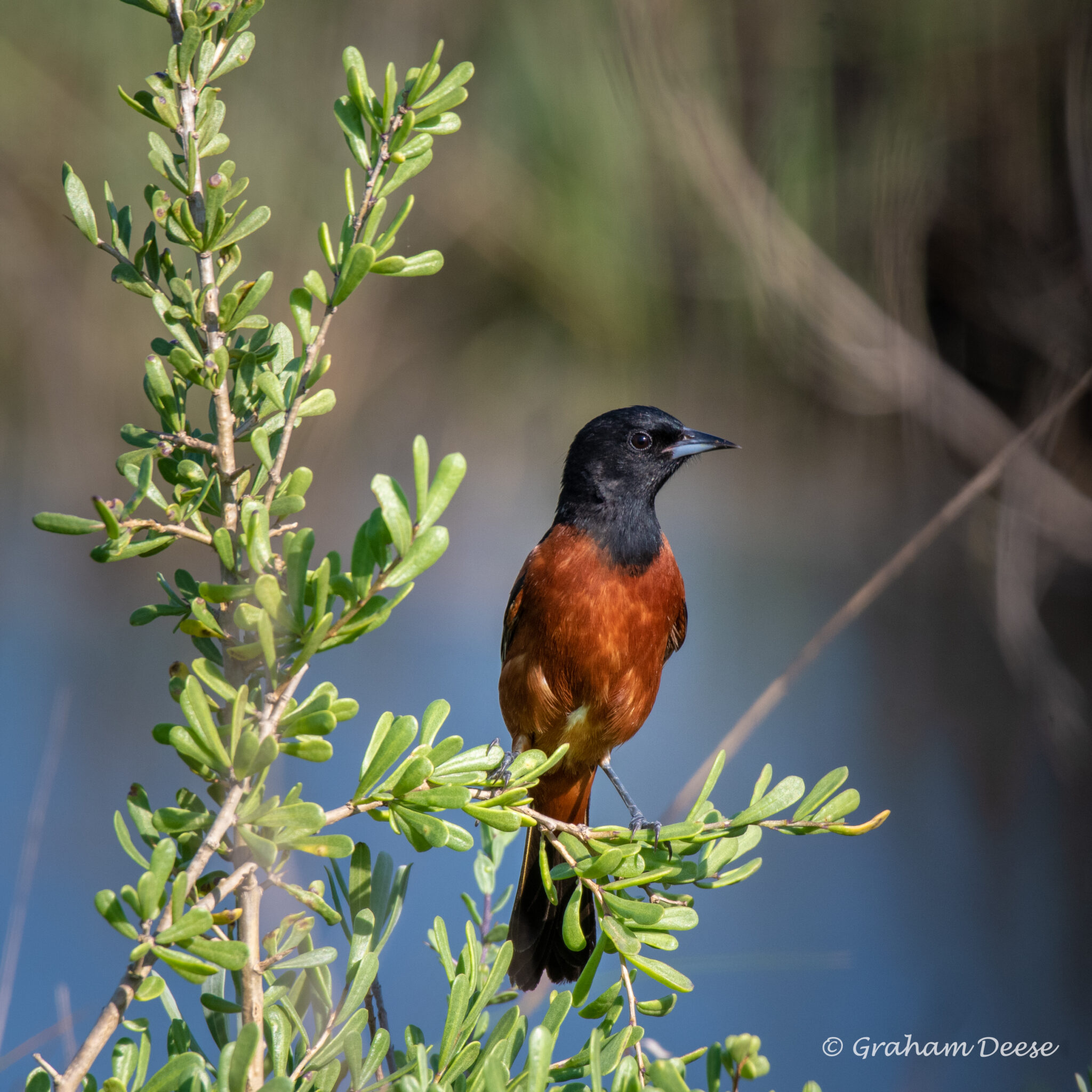 The Orchard Oriole is nicely framed by the limbs around it. Makes the bird stand out even more.