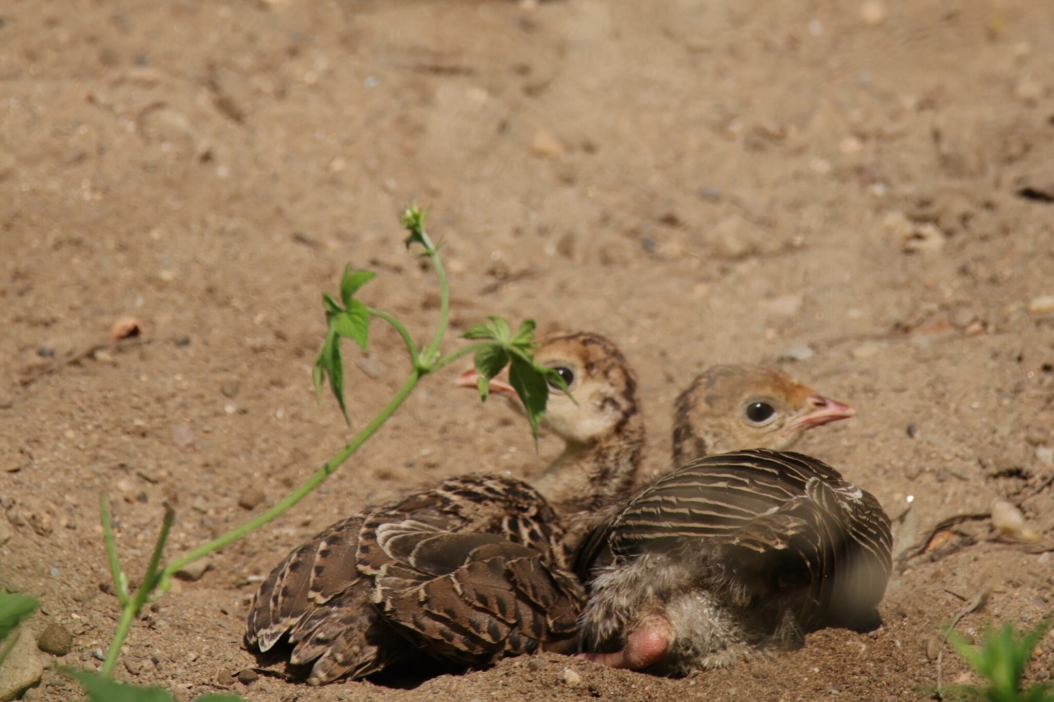 These chick were out for a walk with mom; first wild turkey chicks we’ve seen