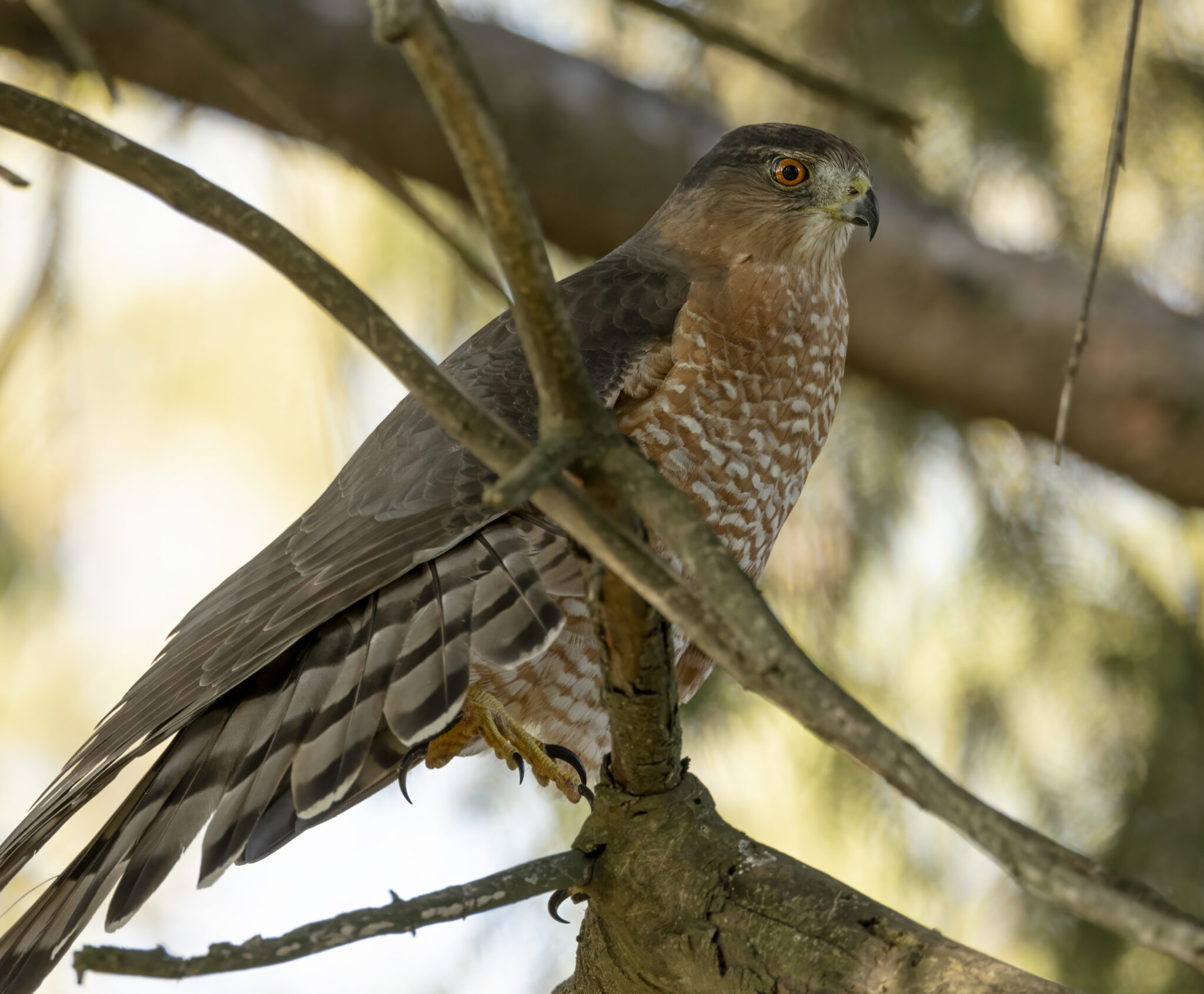 My backyard was awfully quiet this afternoon, no birds at my feeders. I know a hawk was lurking around, and sure enough a Cooper’s Hawk was sitting in our big Evergreen Tree.