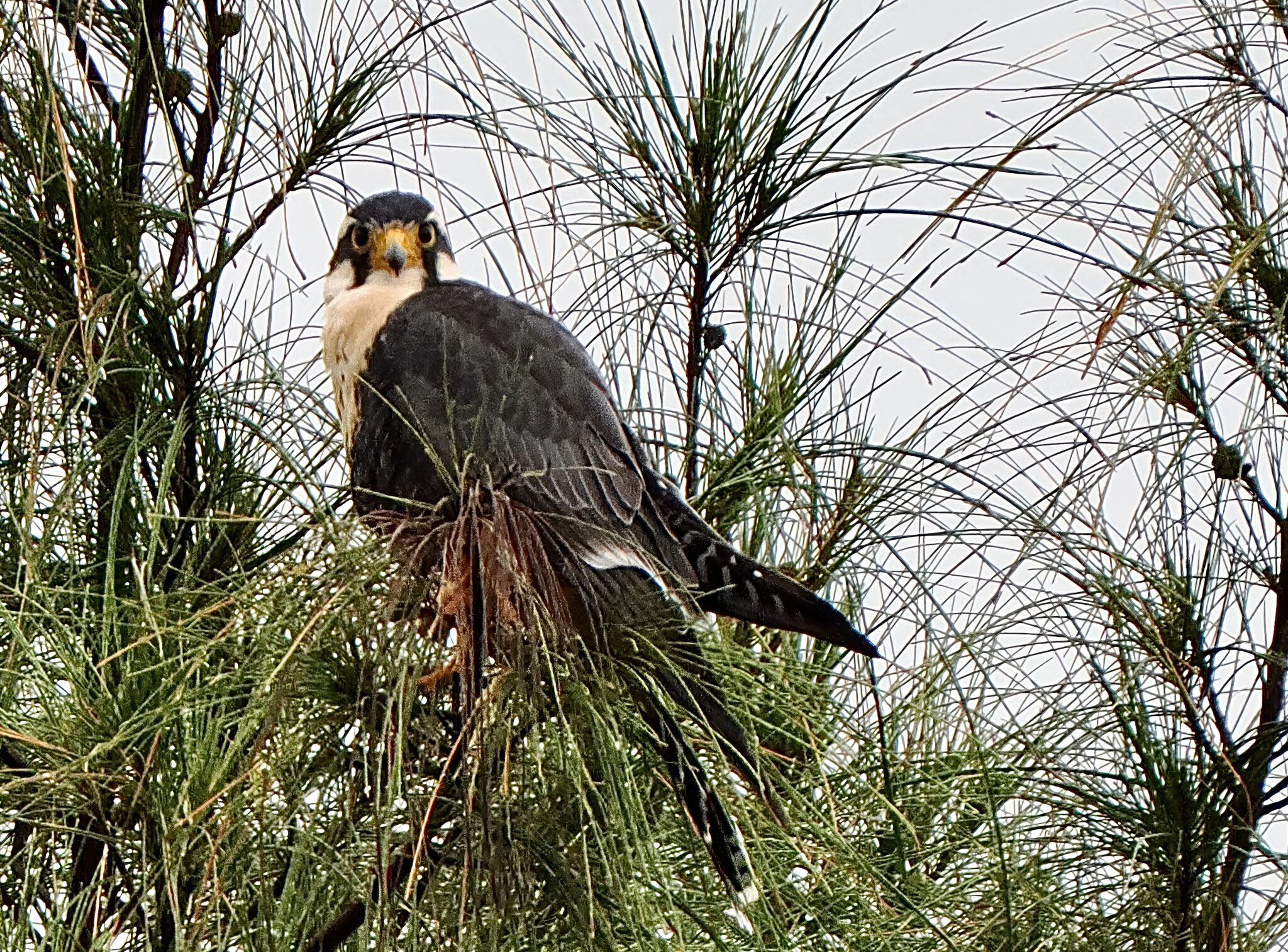 This falcon was perched near the top of a stand of tall trees on the Playa Juan Angel.