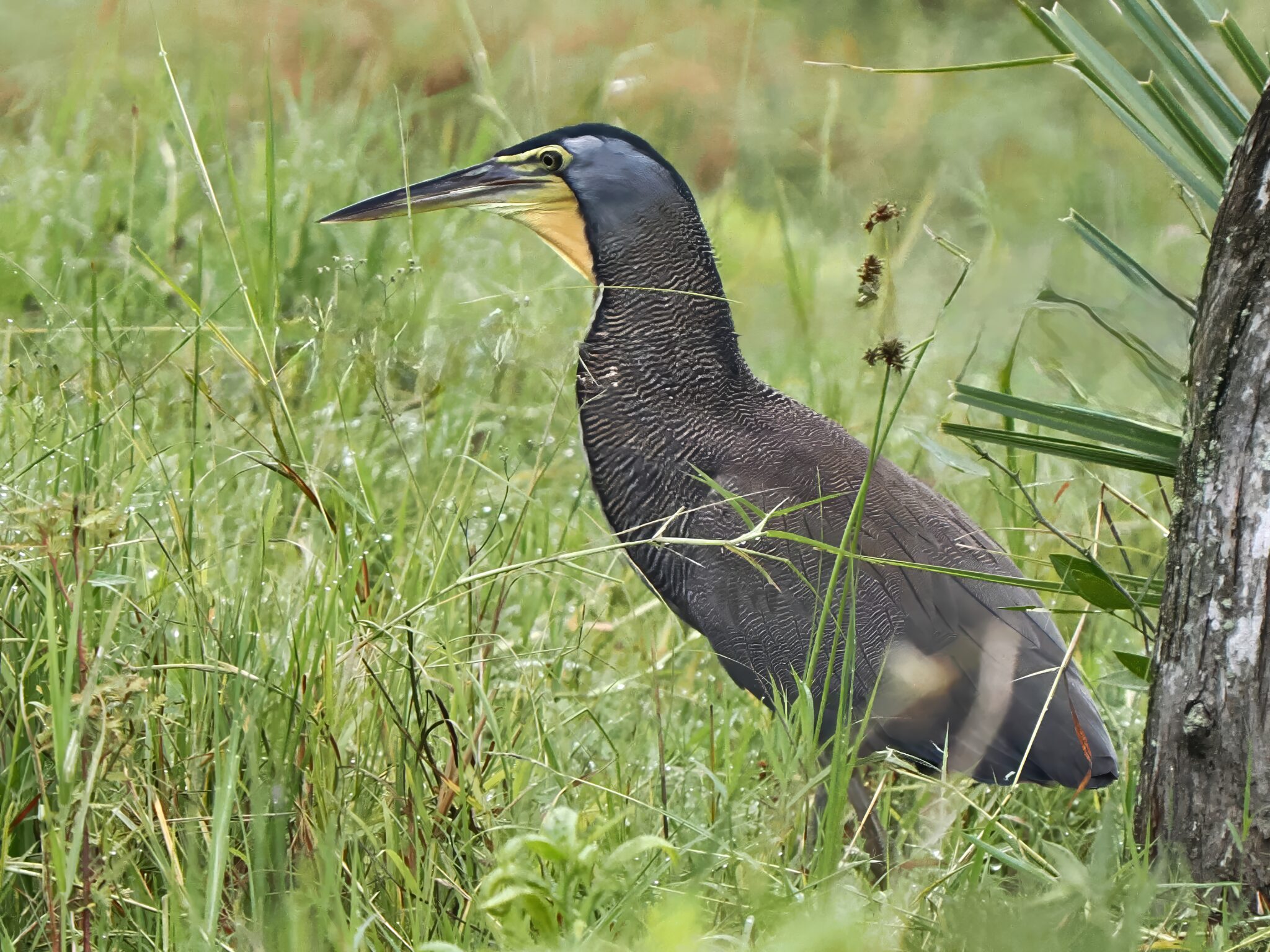 We spotted this interesting Bare-throated Tiger-heron as it was hunting in the grass along a stream in a farmer’s field along a country road. It occasionally disappeared behind the grass, but was more focused on hunting than it was by us watching it.