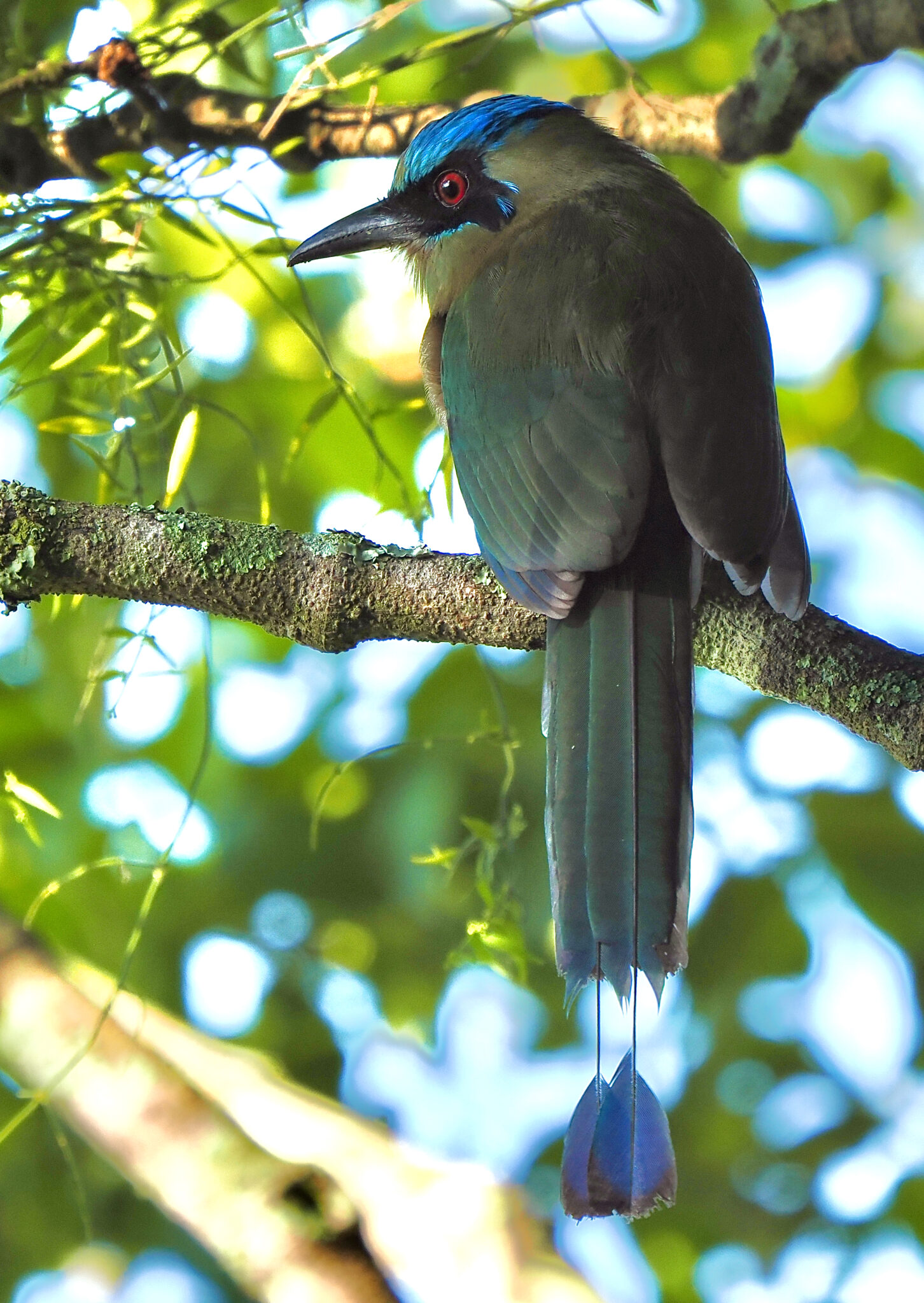 I love Motmots and this Blue-capped was a beauty! They typically travel in pairs. We saw this one first and then the other obscured high in the forest canopy.