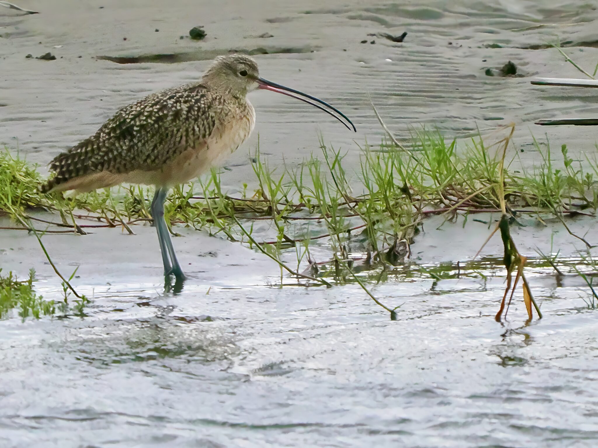It was a dreary, very windy day. Most small birds were not visible as they were keeping out of the wind. Some shorebirds were active, including this Long-billed Curlew that was feeding along the shoreline.