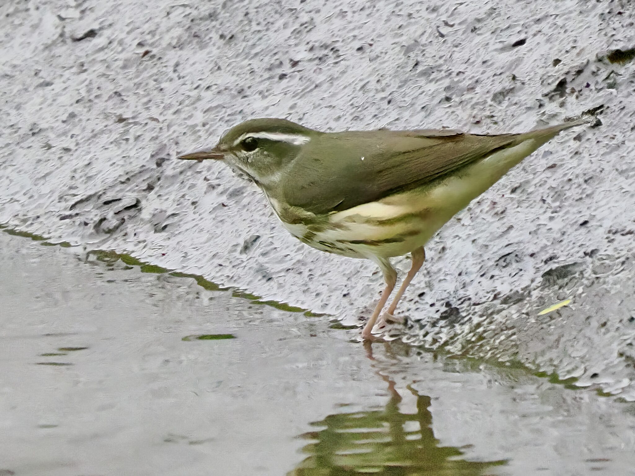 This Louisiana Waterthrush was foraging at the edge of a canal.
