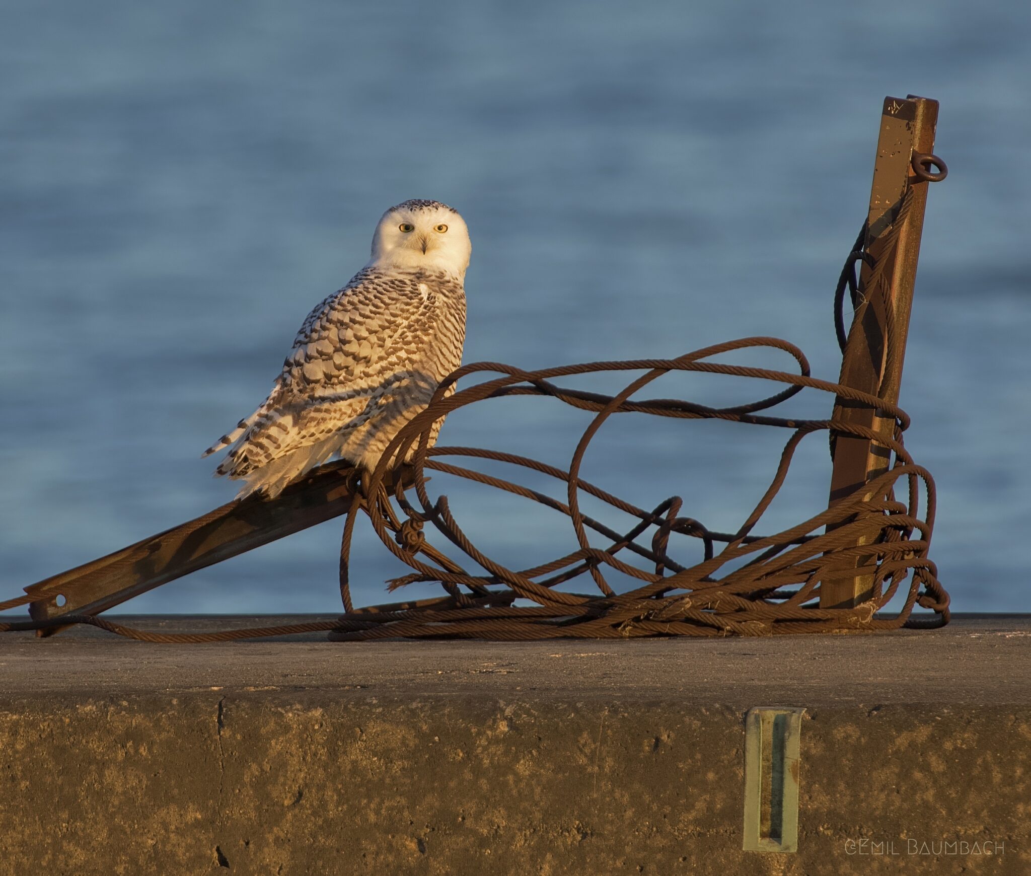 There were probably close to 100 people photographing the two Snowy Owls on Fish Hook pier this morning. This is one of my favorite shots.