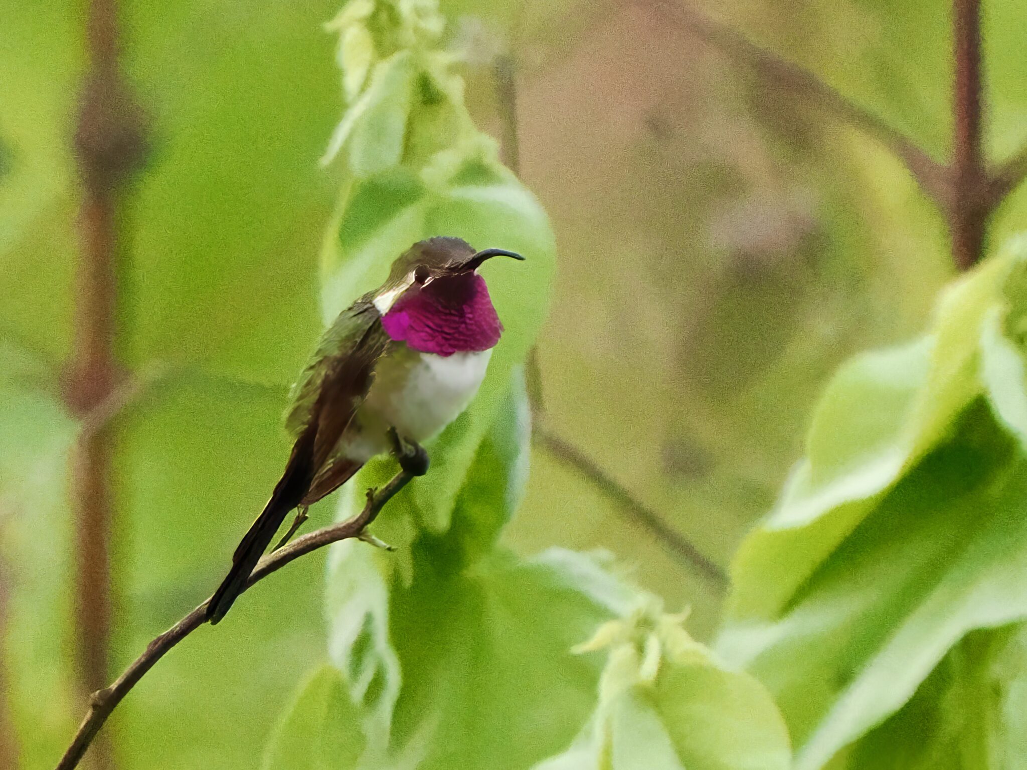 We were walking along El Crucero Road near Cardel on a sunny afternoon, watching the Double-striped Thick-knees in a broad field. A lone tree stood along the fence line and in it was a hummingbird feeder. Our guide said the feeder attracted Mexican Sheartail Hummingbirds that were known to be in the area. I watched the feeder for nearly an hour, seeing only a female Ruby-throated, while the rest of our group walked down the road. As the afternoon progressed toward evening, the Mexican Sheartail Hummingbirds suddenly appeared.