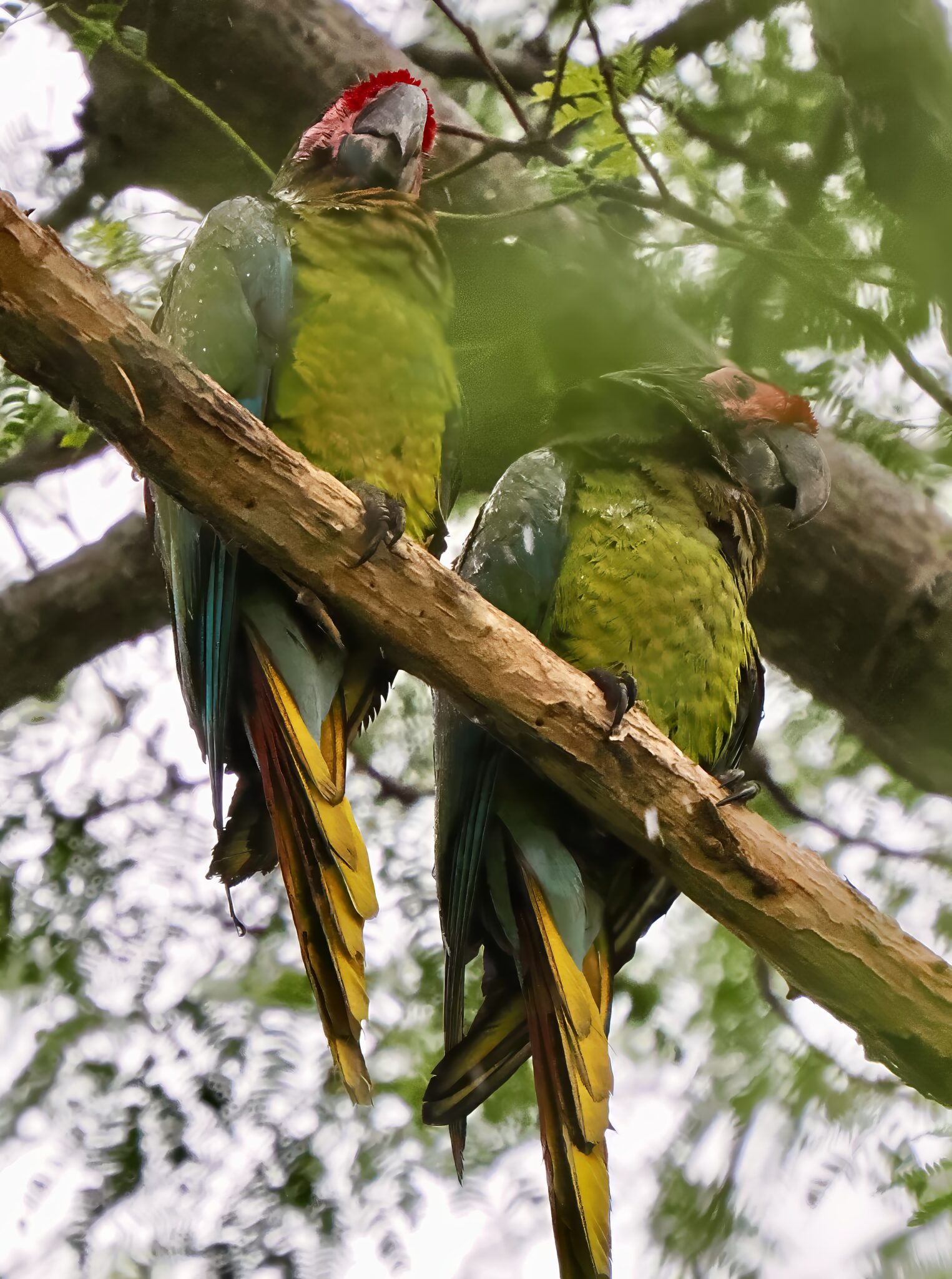 I stayed in the van during most of the rain until one of the soaked birdwatchers returned and said there was a pair of Military Macaws in a tree nearby. I stepped out to take this photo. The Military Macaws were a write-in on our trip bird list – the guide said they were not from Veracruz and were probably escapees.