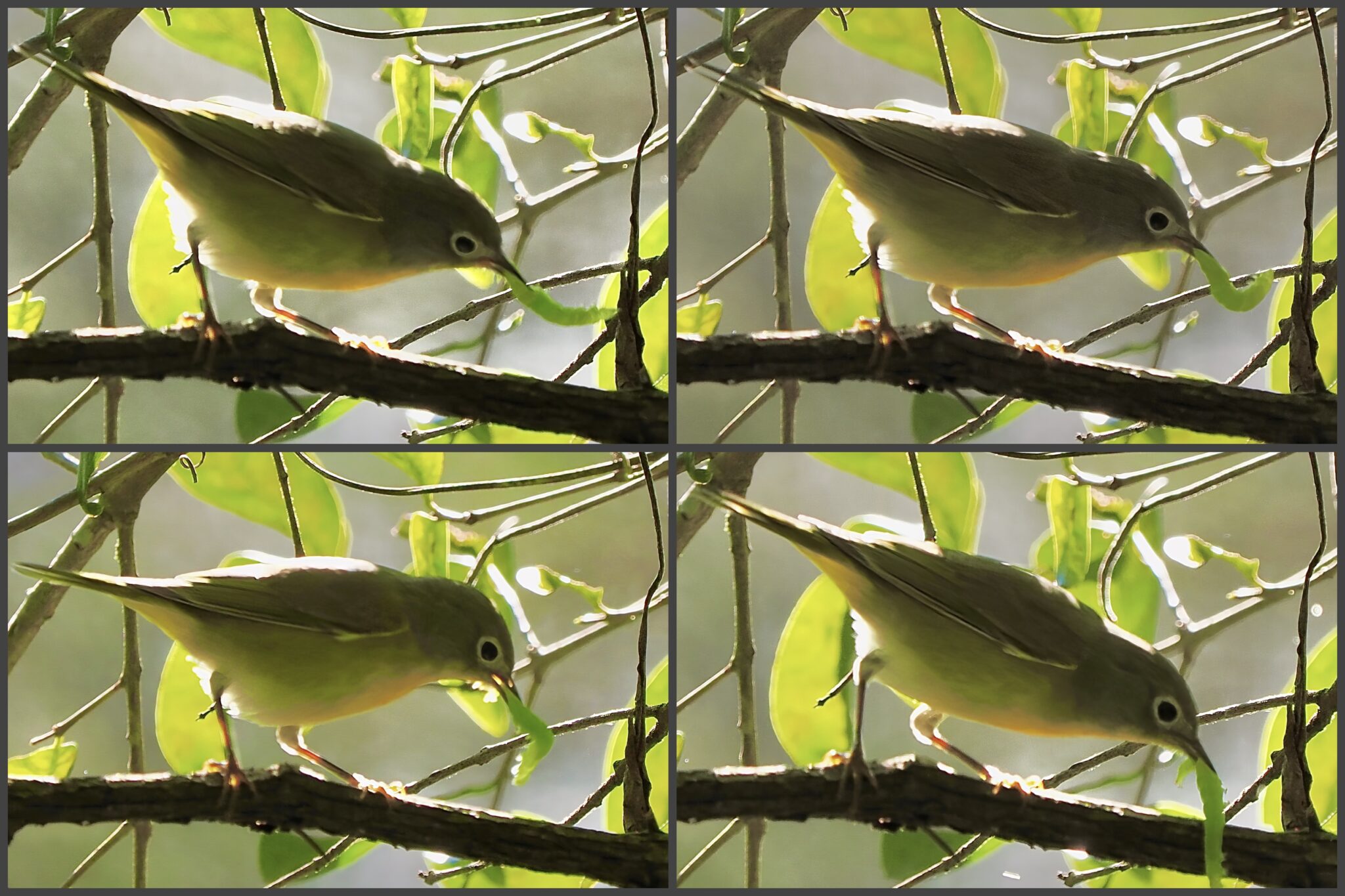 The warblers mostly stayed in the treetops. But I observed this Nashville Warbler at eye level as it captured and devoured this caterpillar!