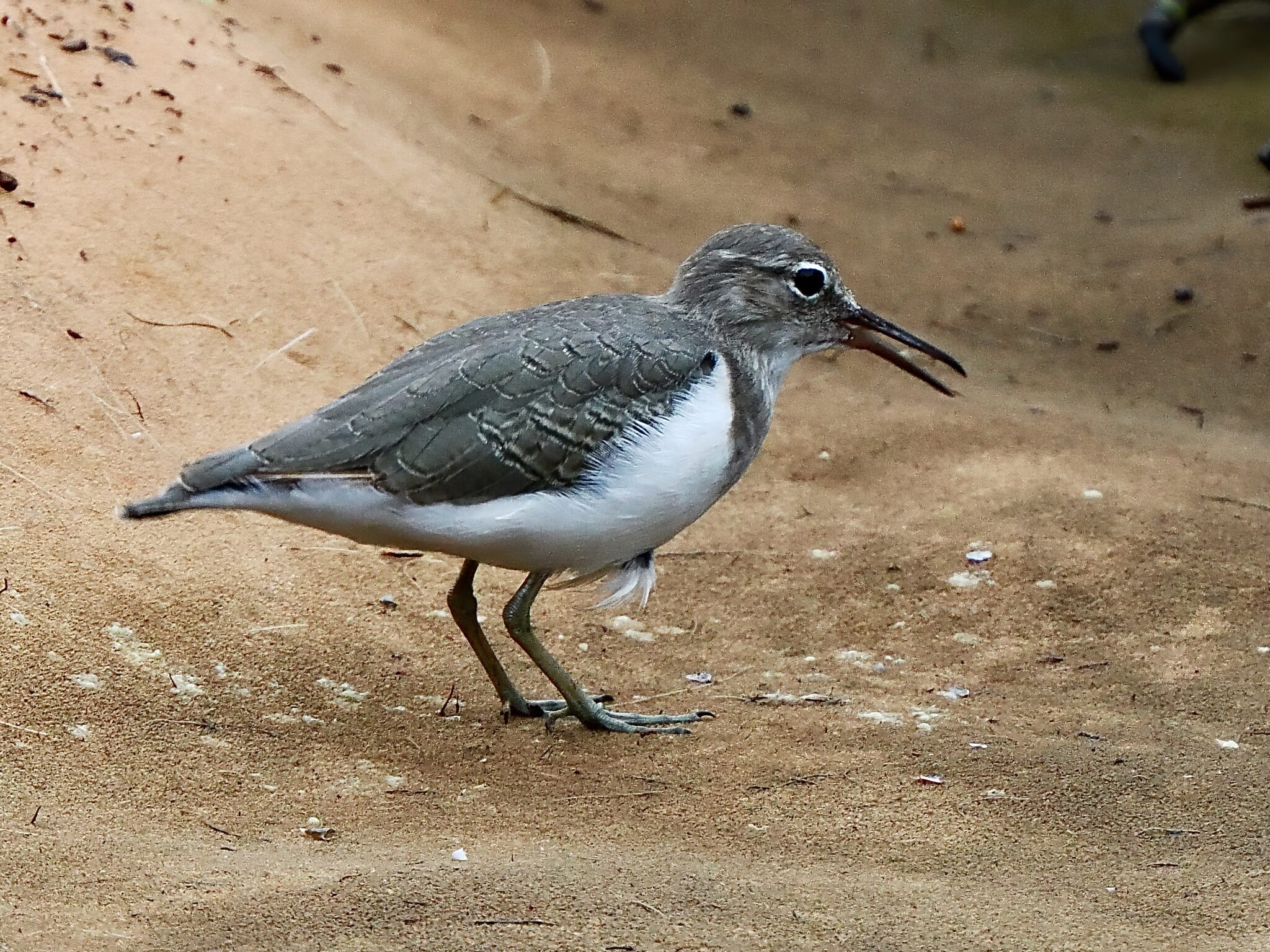 This bird was hanging around several small boats that had been pulled ashore along a river bank.