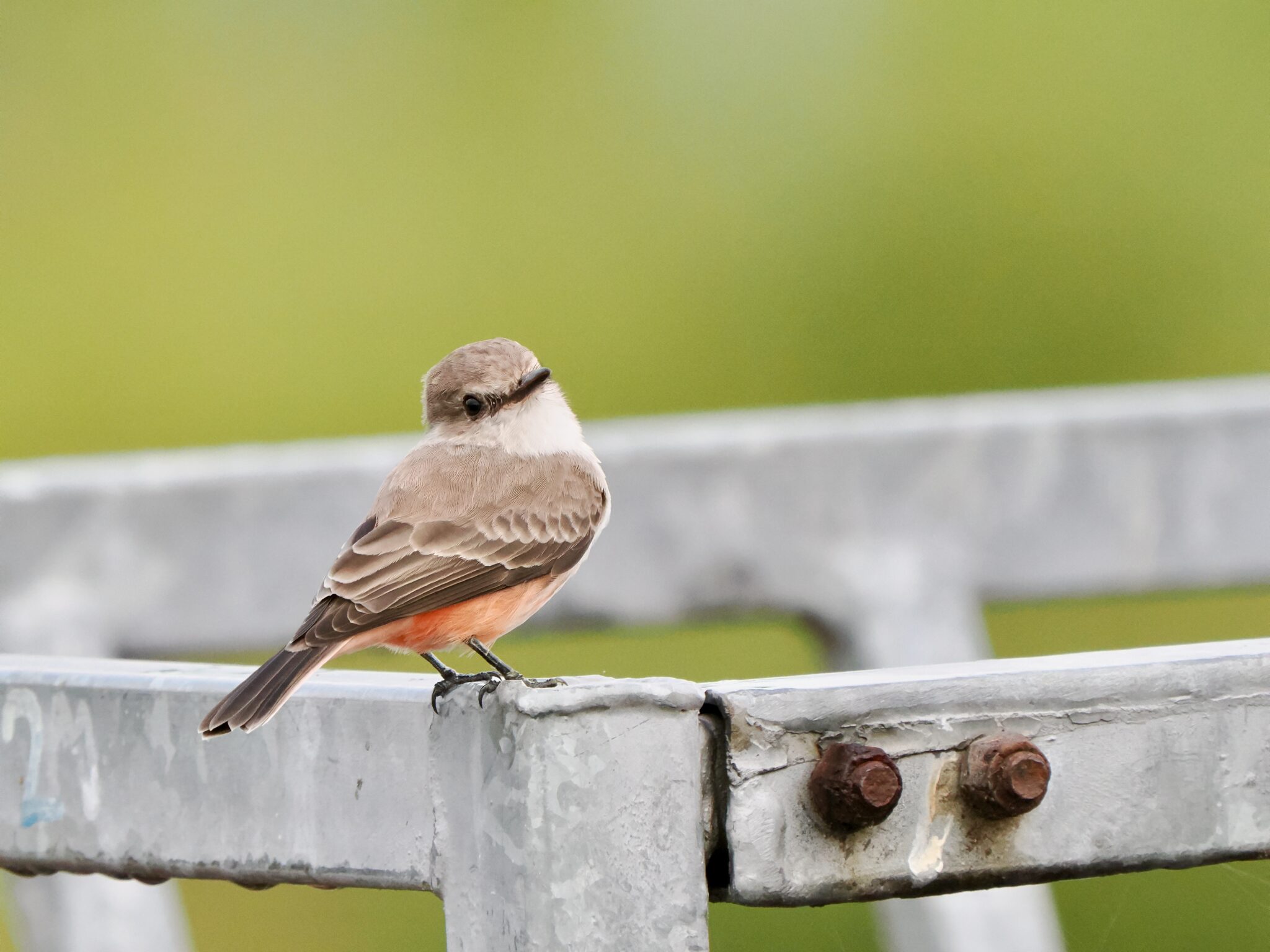 This Vermilion Flycatcher was perched on a feeding station that was located in a cattle yard. The male was nearby.