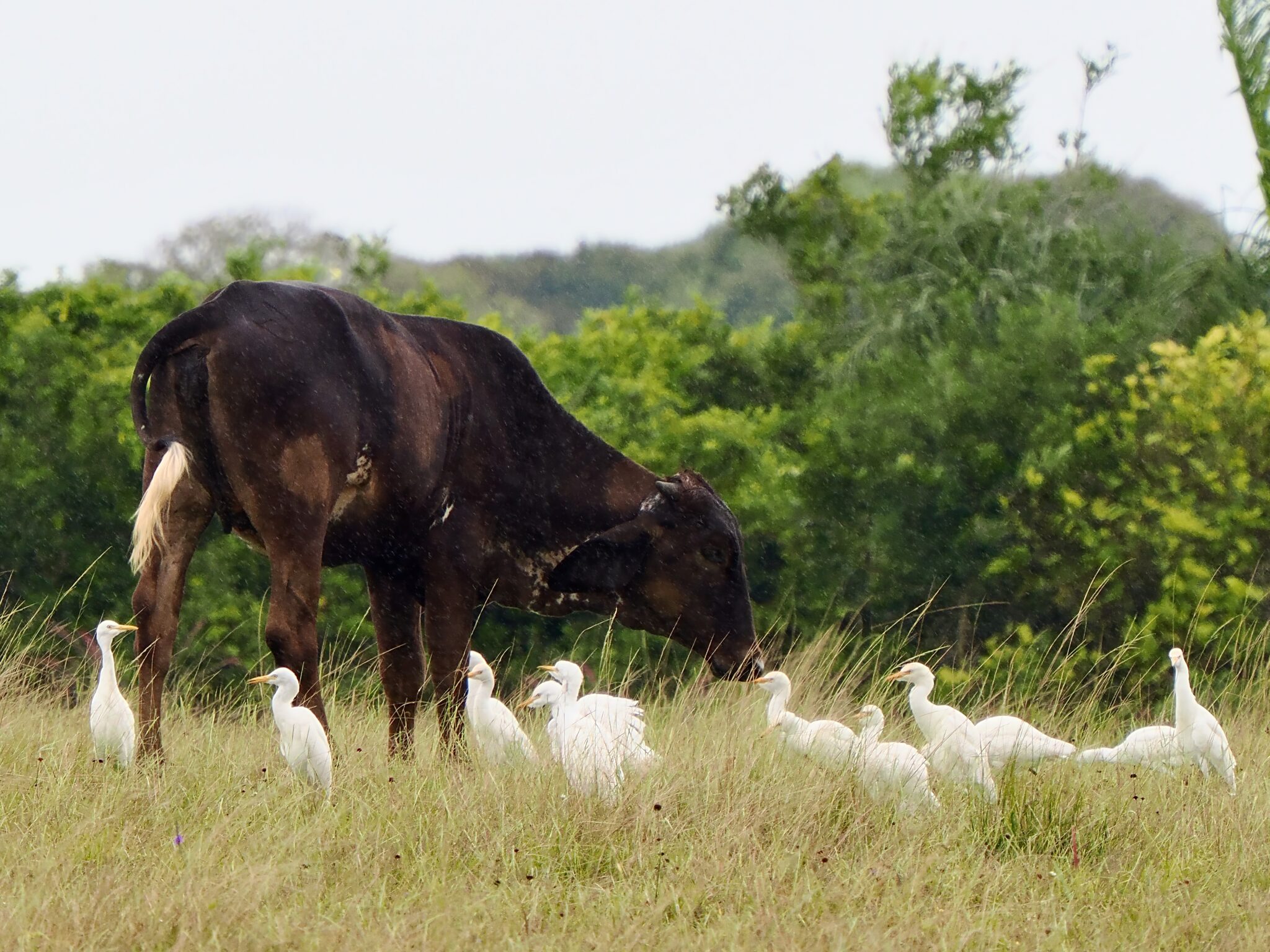 These Western Cattle Egret were clustered around a cow, doing what they do best.