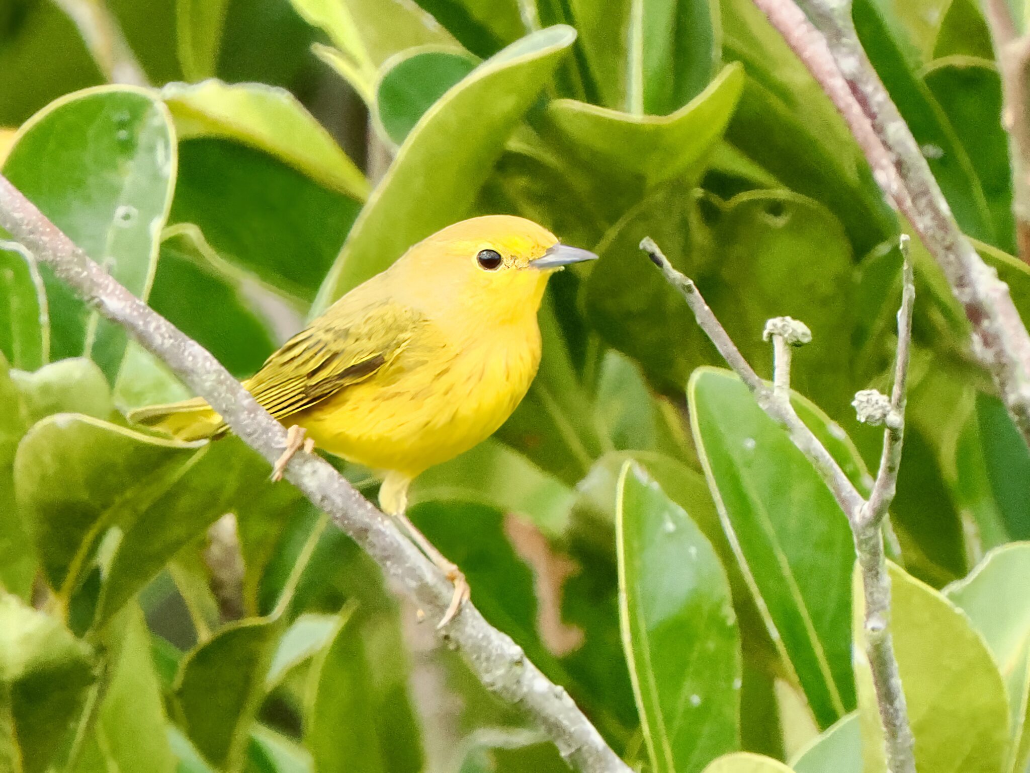 Most of the warblers were high in the treetops and difficult to photograph. This Yellow Warbler appeared for a moment at eye level in a bush.
