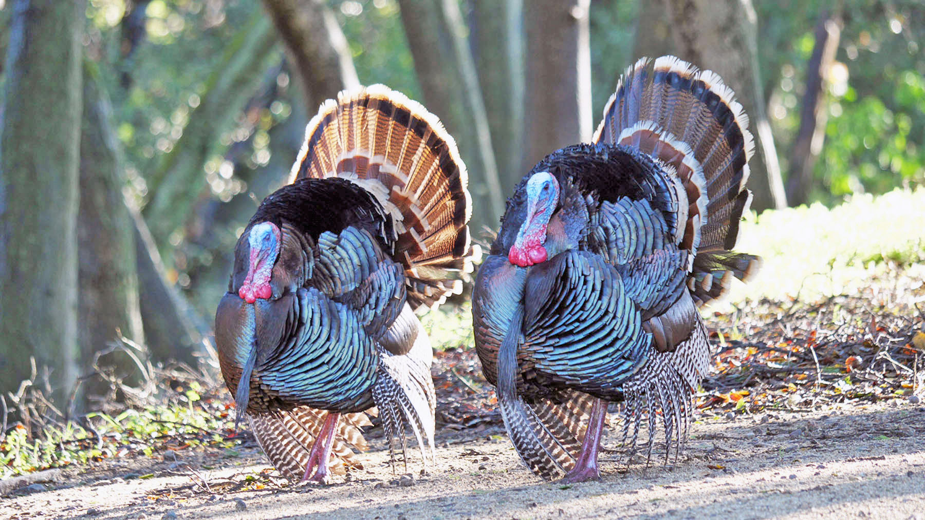 A couple of males have a “gobble off” behind our house in the Evergreen area of San Jose, CA USA.