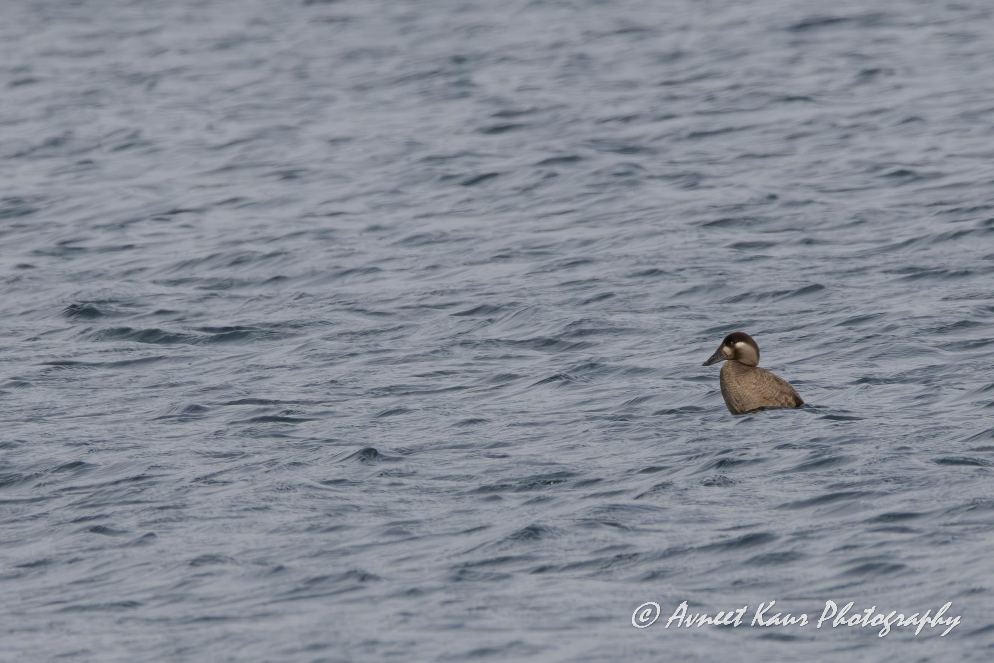 A lone surf scoter is seen swimming on a vast expanse of water with gentle ripples. The overcast sky creates a calm and tranquil scene!!! Rare Sighting; Simpsonville, Kentucky; November 2025; Lifer