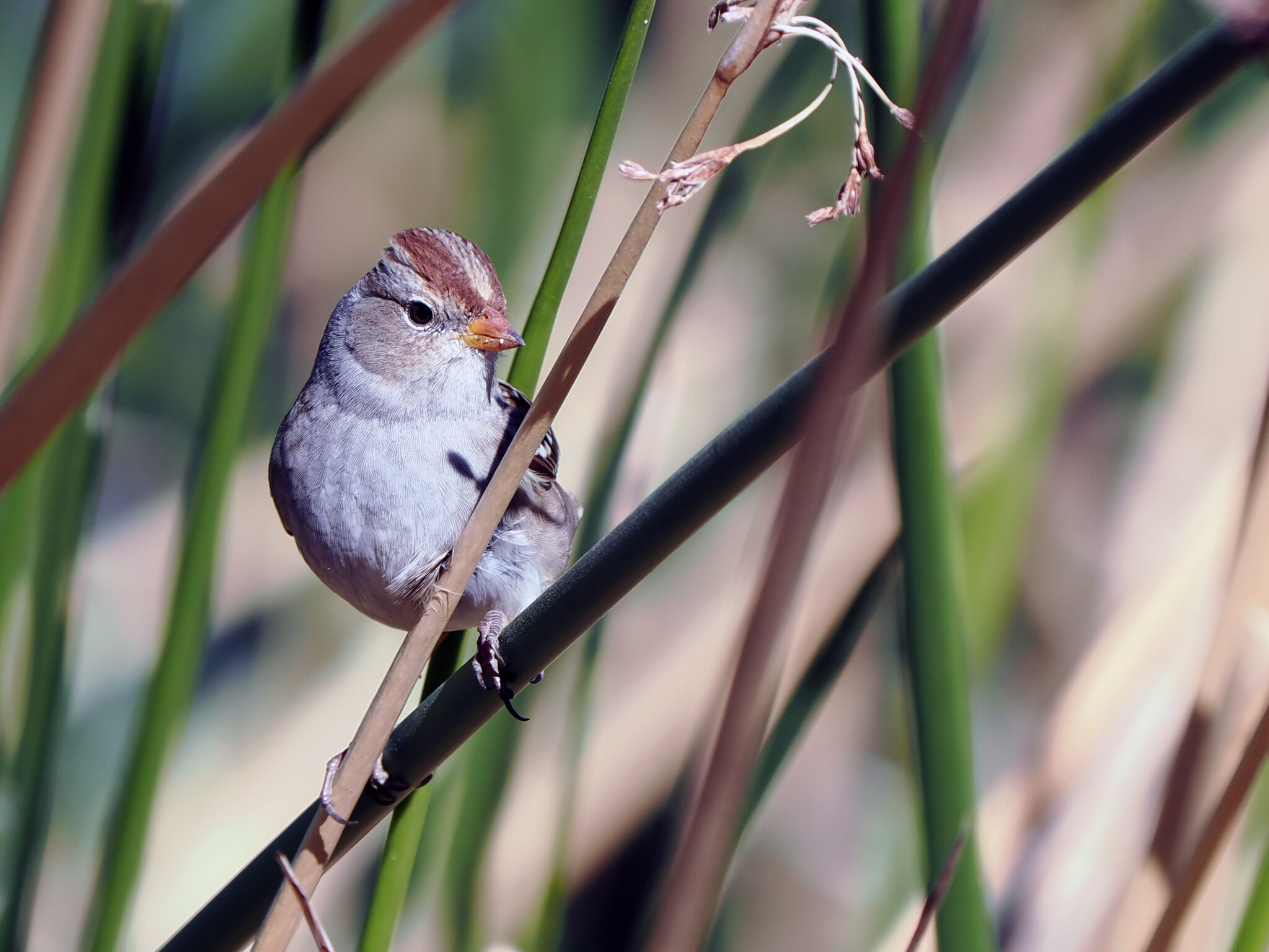 There was a Chipping Sparrow flitting through the rushes near the Las Vegas Wash.