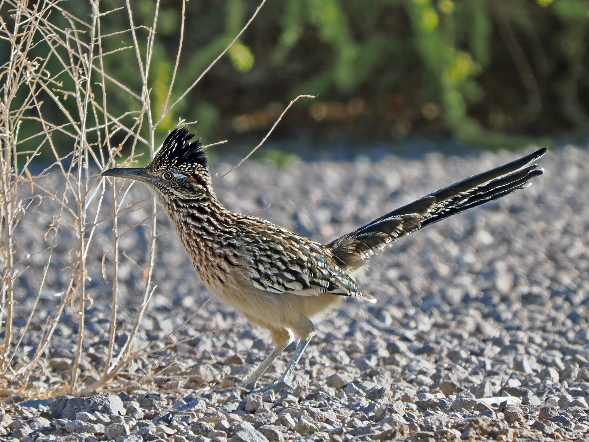 We watched this Greater Roadrunner hunting in the grasses and bushes along a gravel path near the Las Vegas Wash.