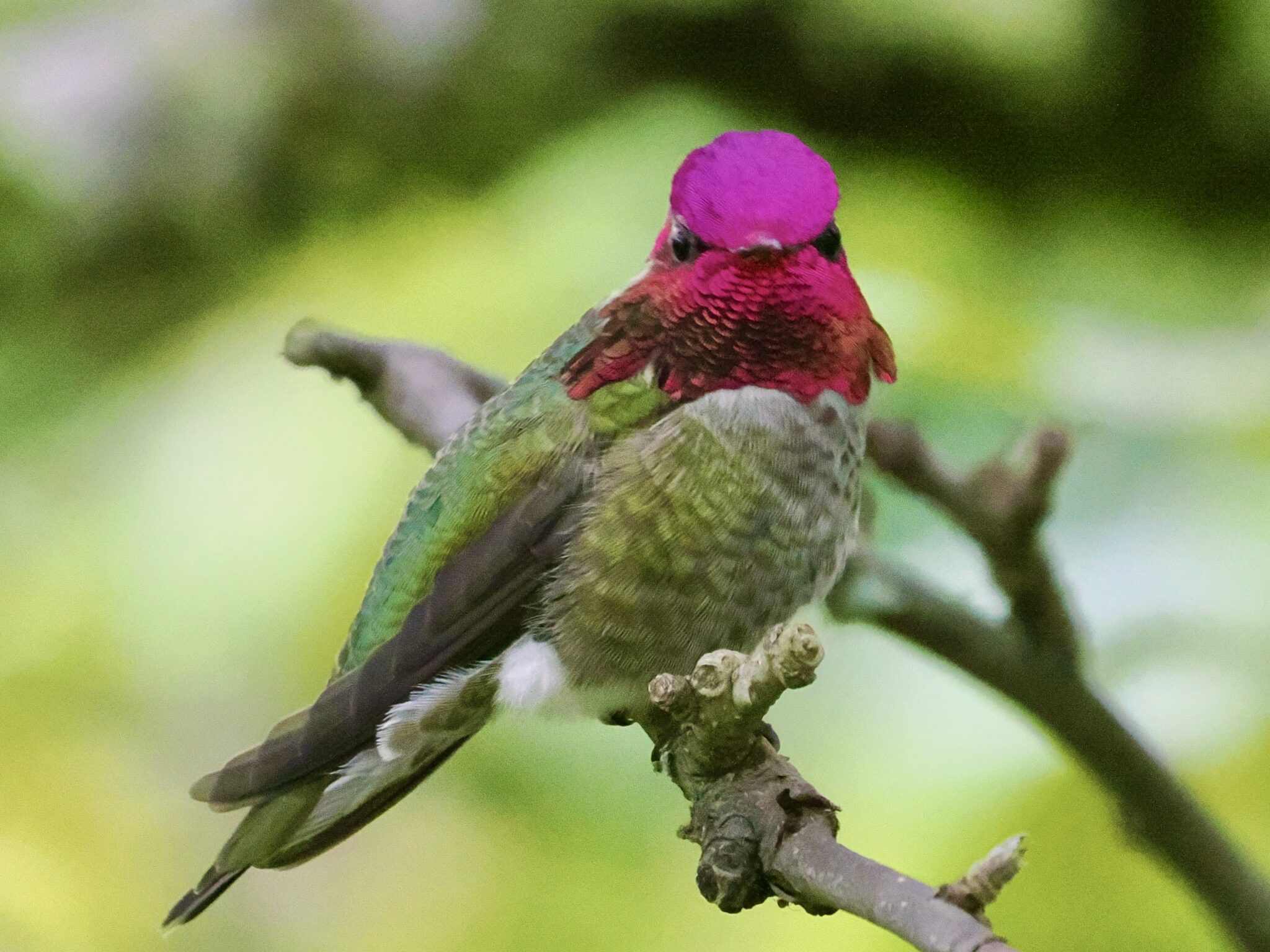 The first few days of November we were in Las Vegas and observed several Anna’s Hummingbirds at feeders. Two weeks later I was in the San Francisco area and went to the Filoli Gardens with my daughter. There were many Anna’s Hummingbirds chasing each other around the garden grounds. As the park was closing for the day, I ran into a couple who were staring into the middle of a small tree where this Anna’s was perched. A wonderful spot!