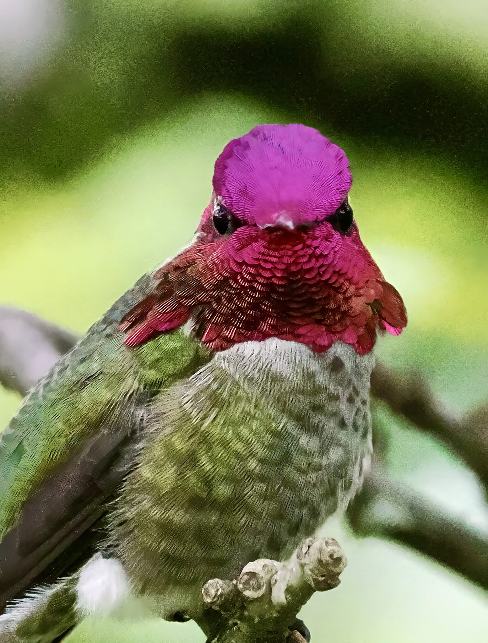 The first few days of November we were in Las Vegas and observed several Anna’s Hummingbirds at feeders. Two weeks later I was in the San Francisco area and went to the Filoli Gardens with my daughter. There were many Anna’s Hummingbirds chasing each other around the garden grounds. As the park was closing for the day, I ran into a couple who were staring into the middle of a small tree where this Anna’s was perched. A wonderful spot!