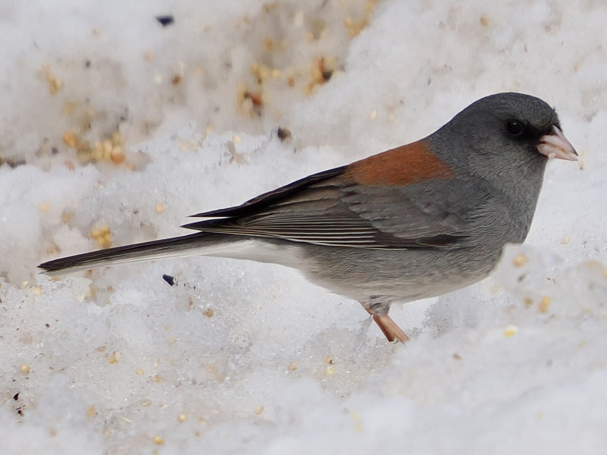 We saw several Juncos near feeders at the Moose Visitor Center near Walden, CO.