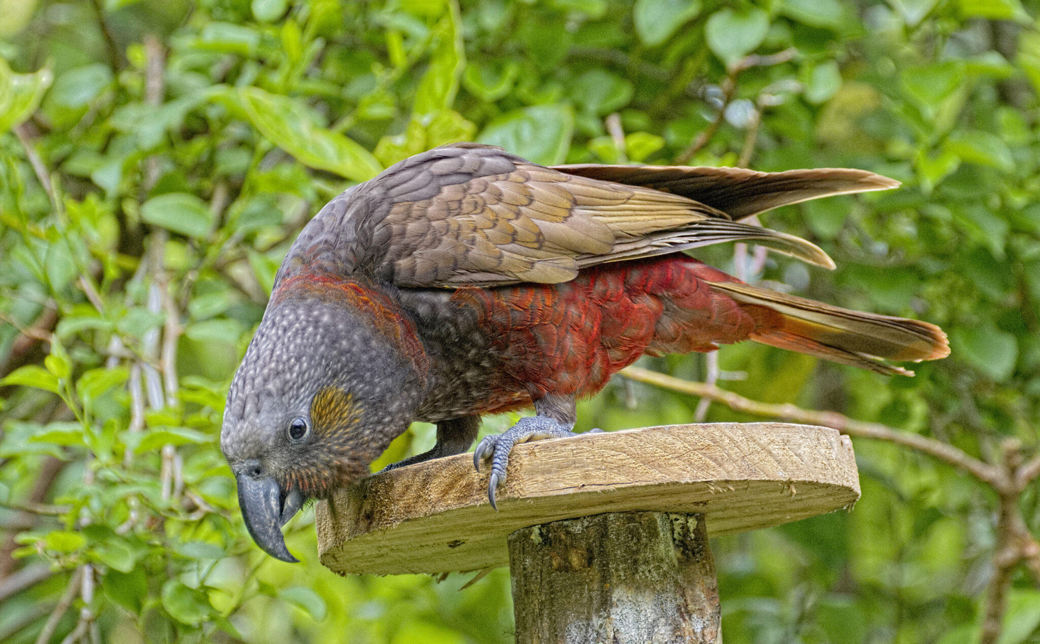 looking down to see what else it can find to eat. This is the reddist bird we have in NZ. No snow here just hot summer days right now