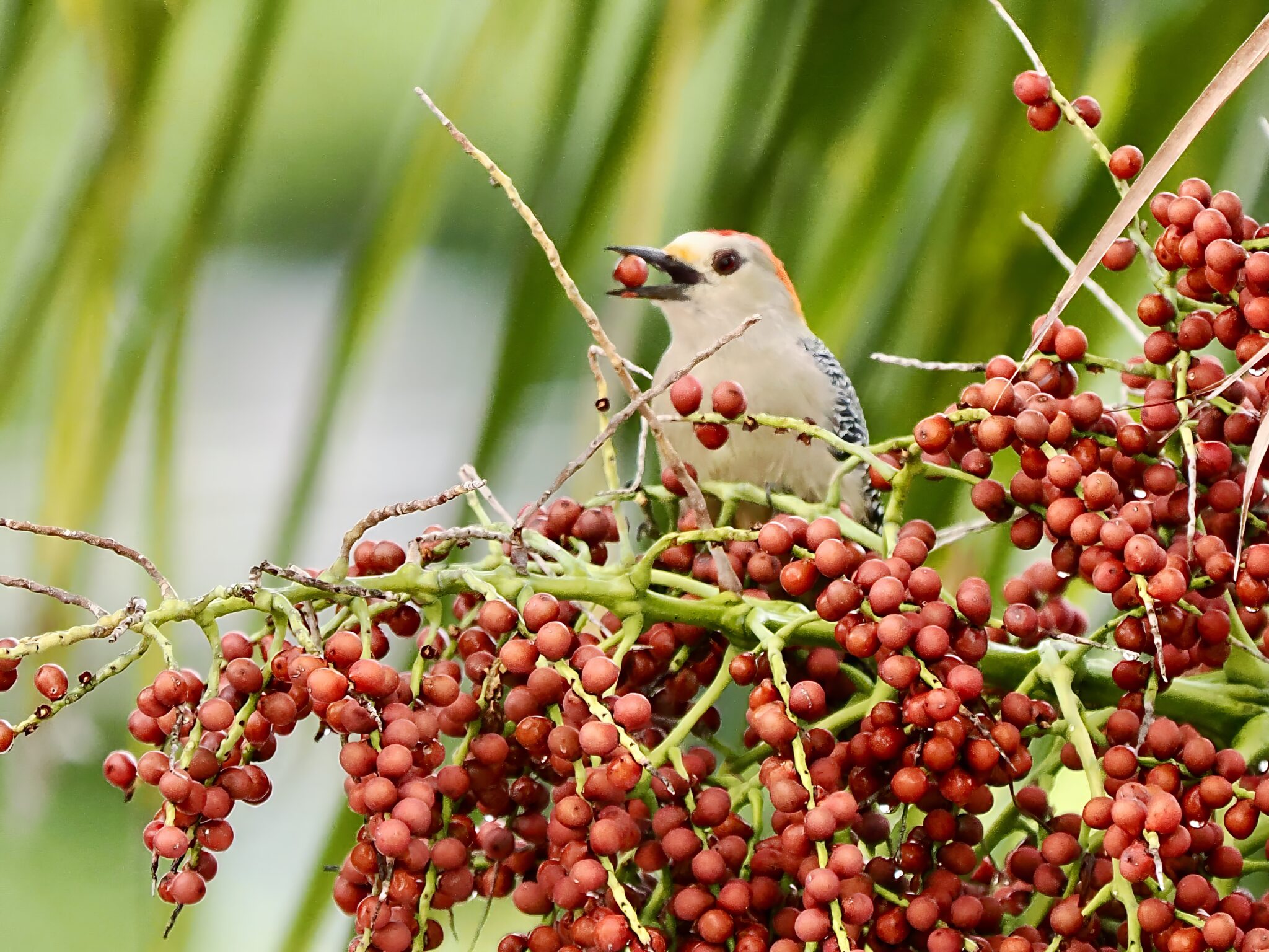 What says Happy Holidays more than a beautiful Golden-fronted Woodpecker enjoying red palm tree berries? This one was spotted in a row of palms lining the street across from our hotel in Cardel, MX.