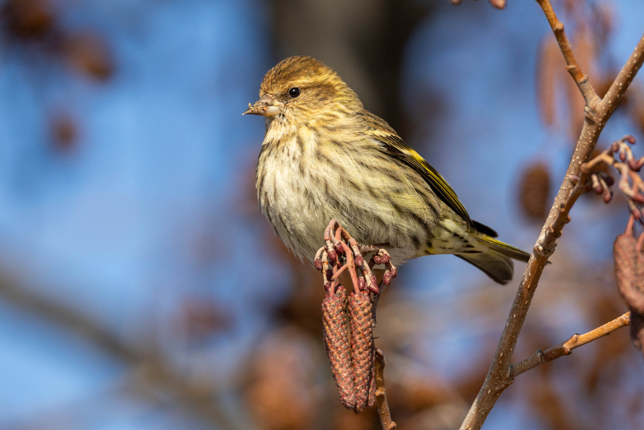 Feeding with a flock in the alders