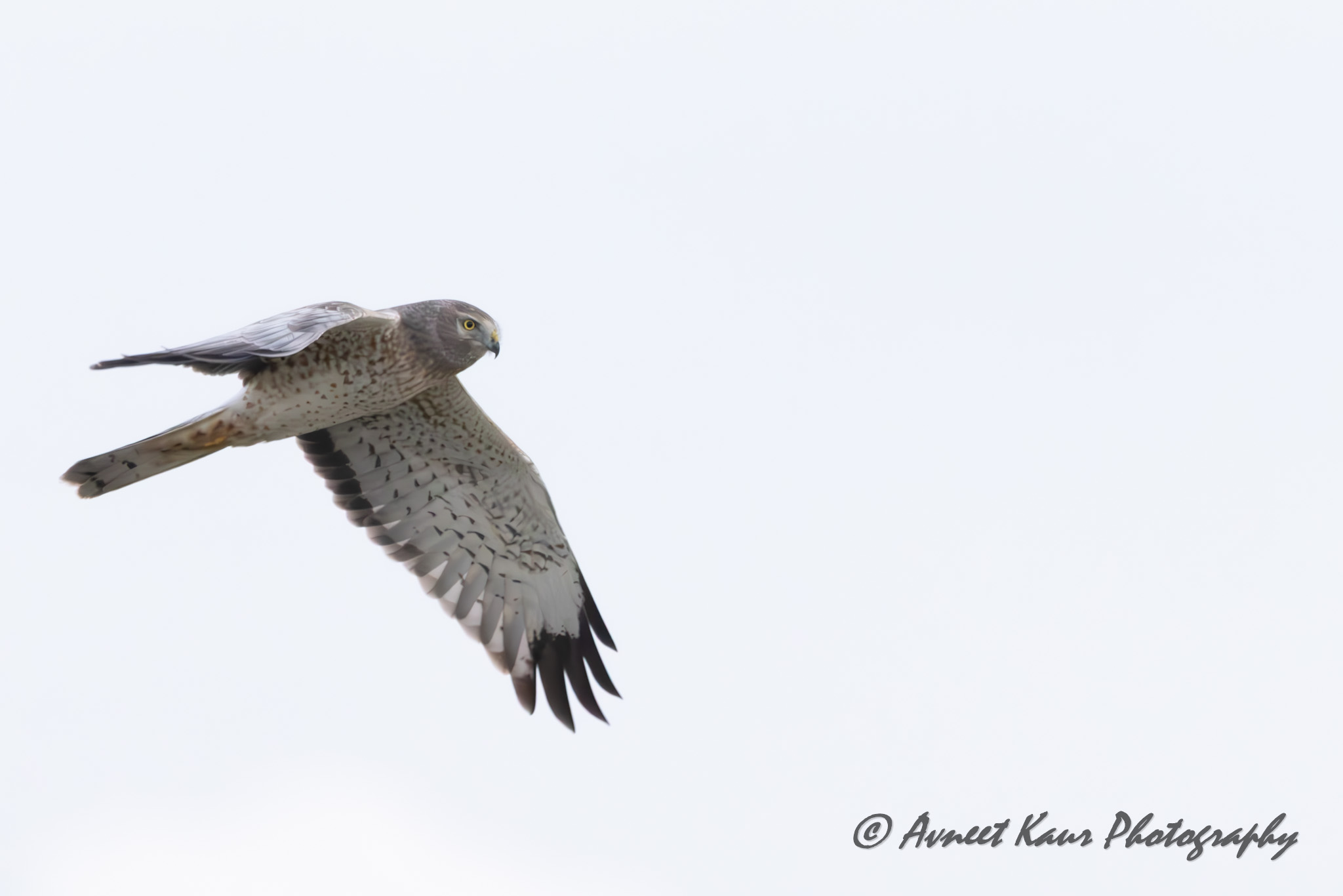 A grey ghost – northern harrier glides effortlessly through a bright, open sky. Its wings are spread wide, showcasing the distinct patterns of its feathers!!! Lexington – Kentucky; January 9, 2026