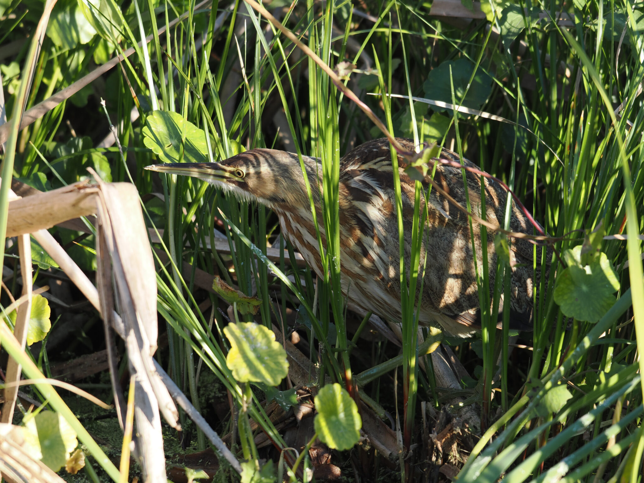 On New Year’s Day we made a stop at the Orlando Wetlands, which is in Christmas, Florida. Just as we started on the boardwalk we both spotted this American Bittern hunting in the reeds.We stood and watched this difficult to find bird for more than 20 minutes. As families walked by, the bird froze and became impossible to see. After they moved past, it resumed its hunt.