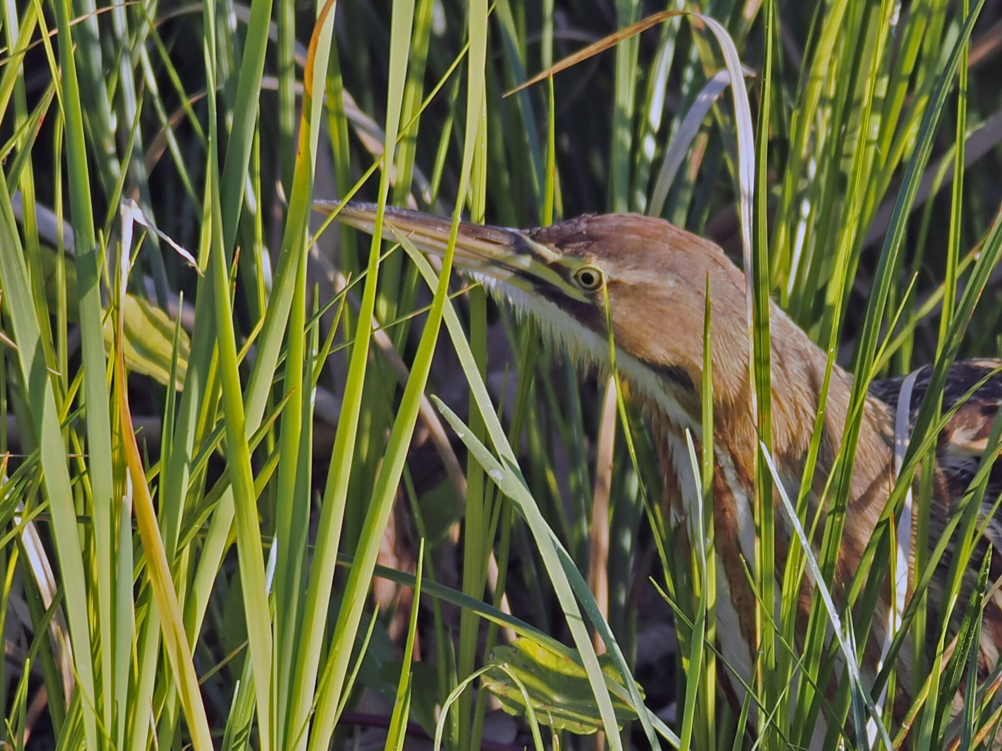 On New Year’s Day we made a stop at the Orlando Wetlands, which is in Christmas, Florida. Just as we started on the boardwalk we both spotted this American Bittern hunting in the reeds.We stood and watched this difficult to find bird for more than 20 minutes. As families walked by, the bird froze and became impossible to see. After they moved past, it resumed its hunt.