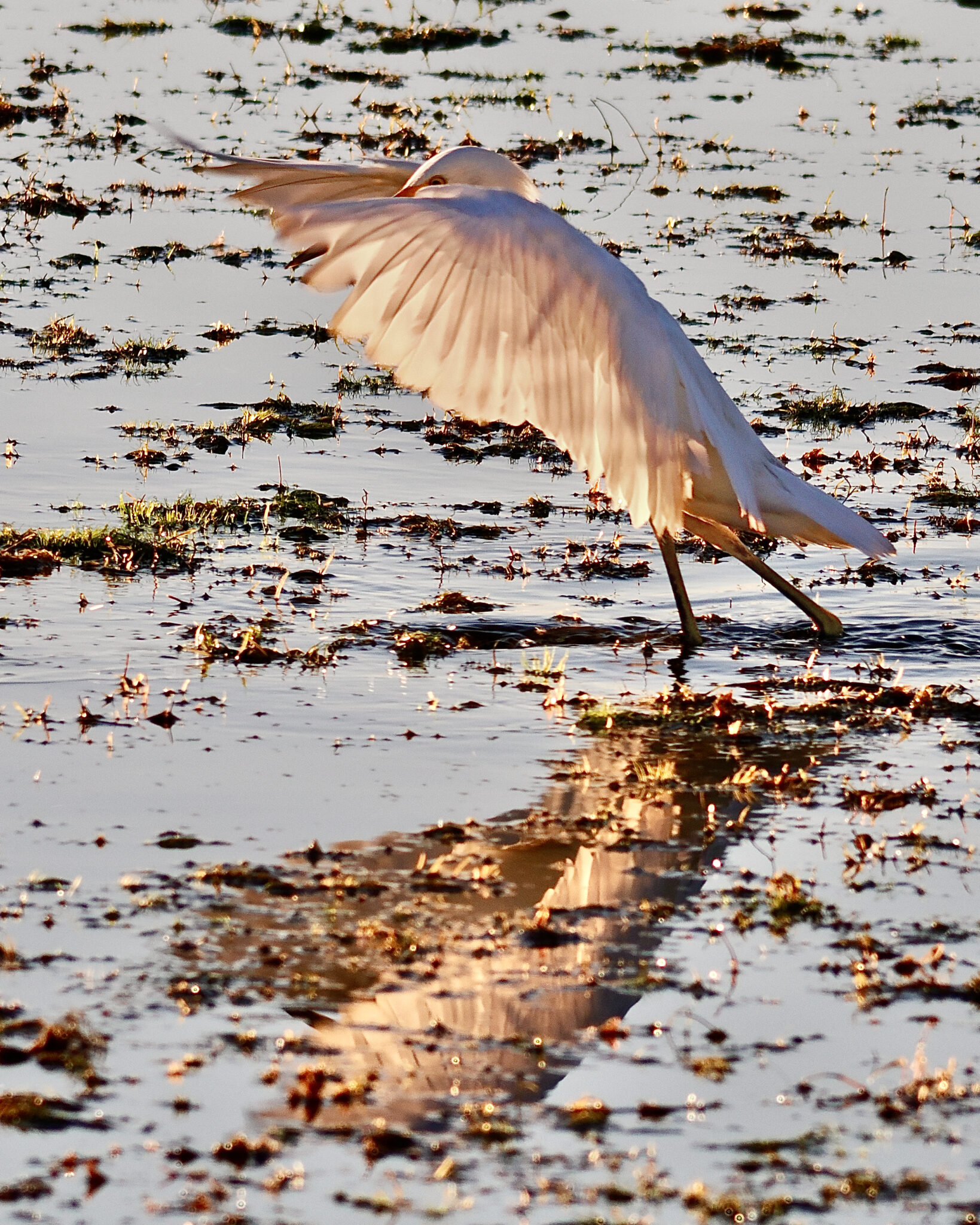This Snowy Egret was hunting as the sun was setting on New Years Day. I really enjoyed seeing the sun shine through the bird’s wings!