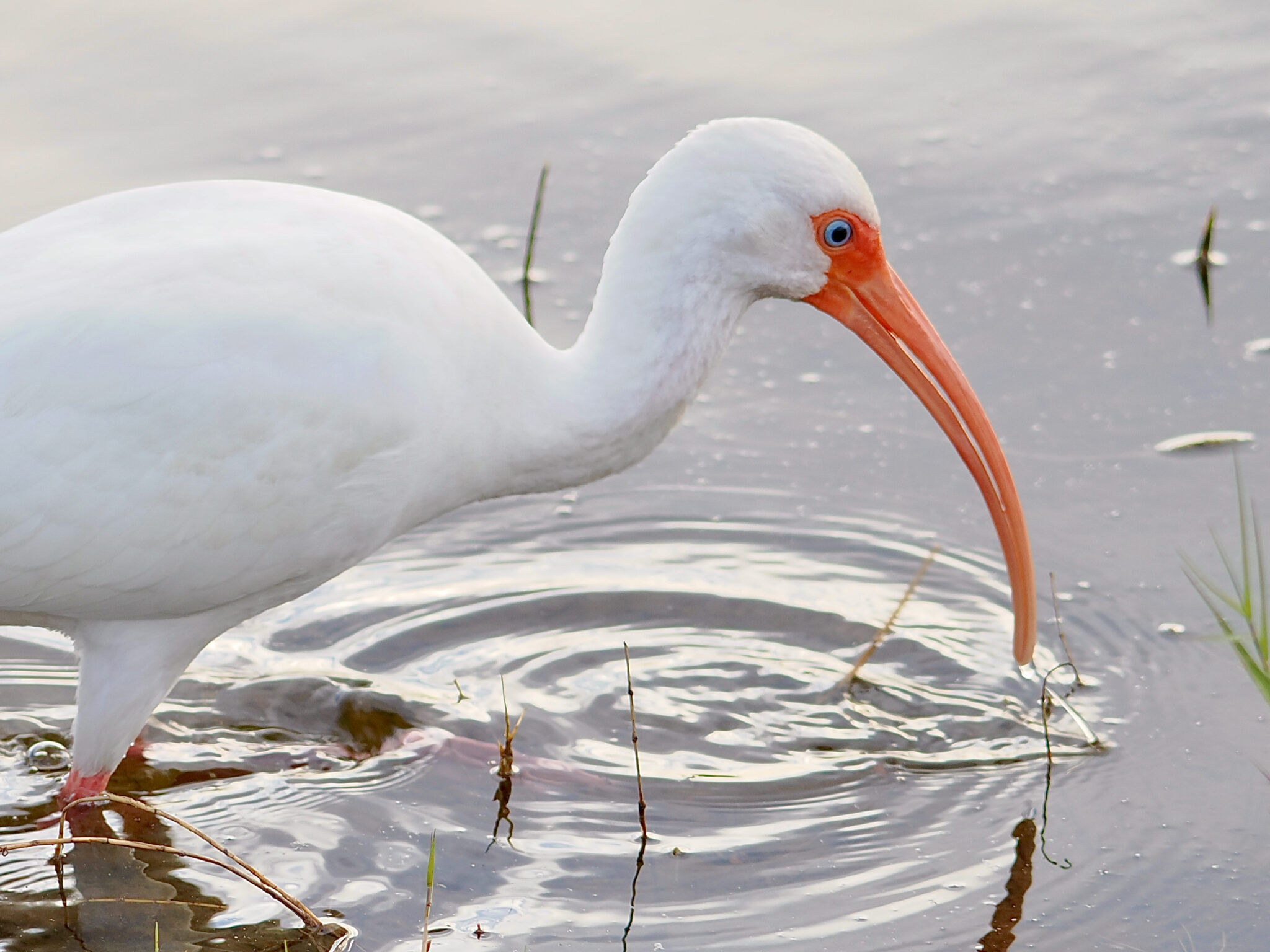 We see White Ibis nearly every day in Southwest Florida. And we saw many while Merritt Island. I decided to post this photo because I liked the close-up of its face and bill while feeding.