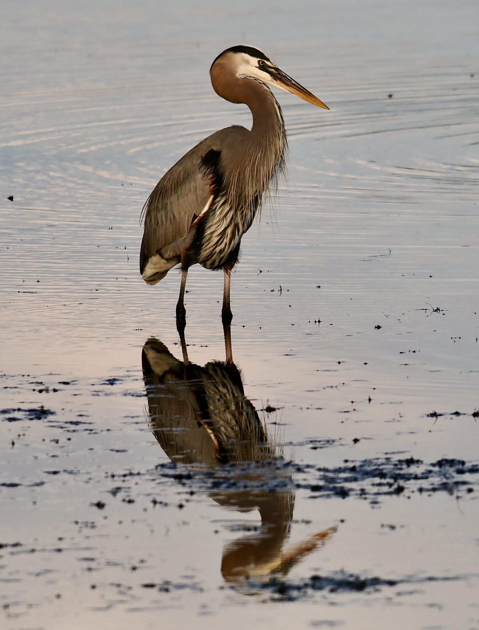 This Great Blue Heron was so colorful during the golden hour as the sun was setting over the salt marsh. I really loved the contrasts and the reflection on the calm water.