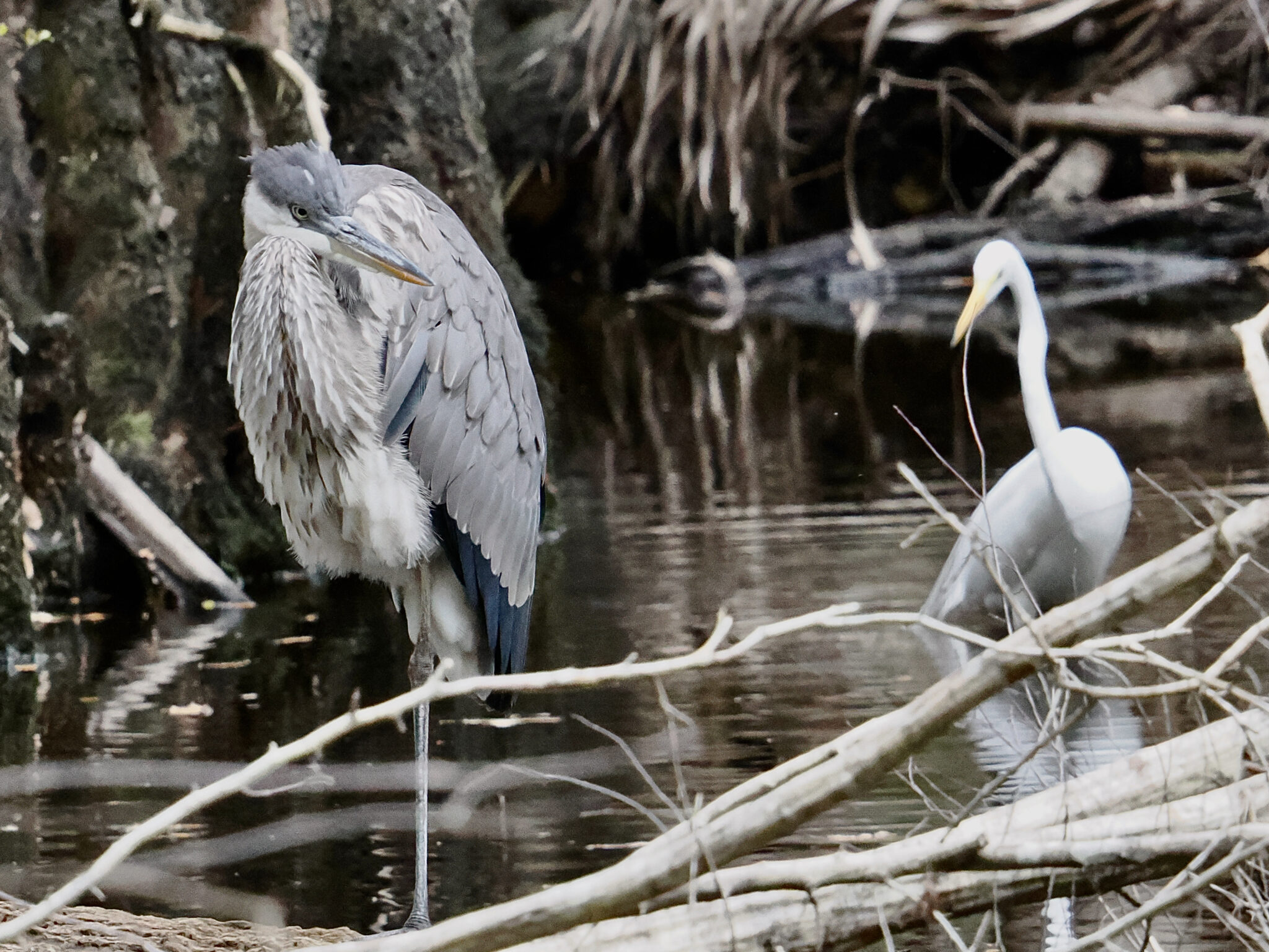 Wow! What a difference in color from the GBH seen the day before. This photo op was mid afternoon and was taken at a stream in the deep woods. This bird appears to be so very gray and lacks the colors and contrasts of yesterday’s golden hour bird.