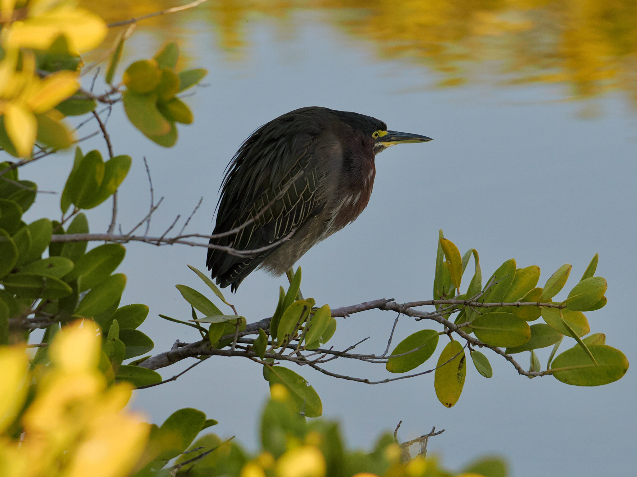 It was late afternoon on a clear, sunny day. The sun was low on the horizon, nearly setting. We were out of the car, walking along the Black Point Wildlife Drive, counting and remarking about the birds we were watching. Sheila asked if I had seen the Green Heron, which I had not. From my perspective, it was completely hidden.